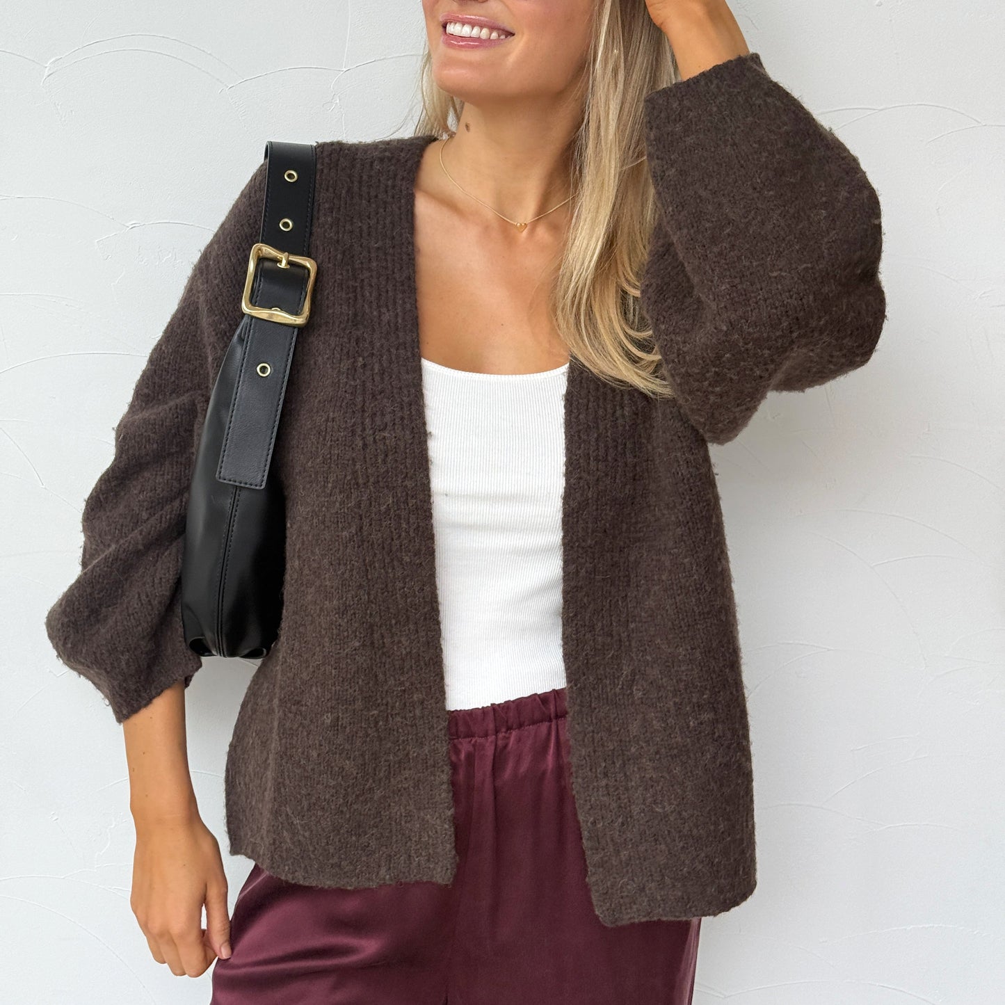 Wool Cashmere Knit Cardigan - Dark Merlot