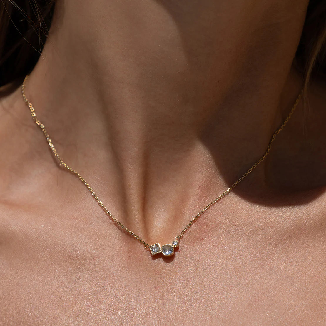 Shimmering and stunning, the Naomi Necklace is an elegant piece here to be your new favourite, day or night! With 3 beautifully shaped stones, Naomi is one of a kind and can be easily stacked to suit your own unique style.