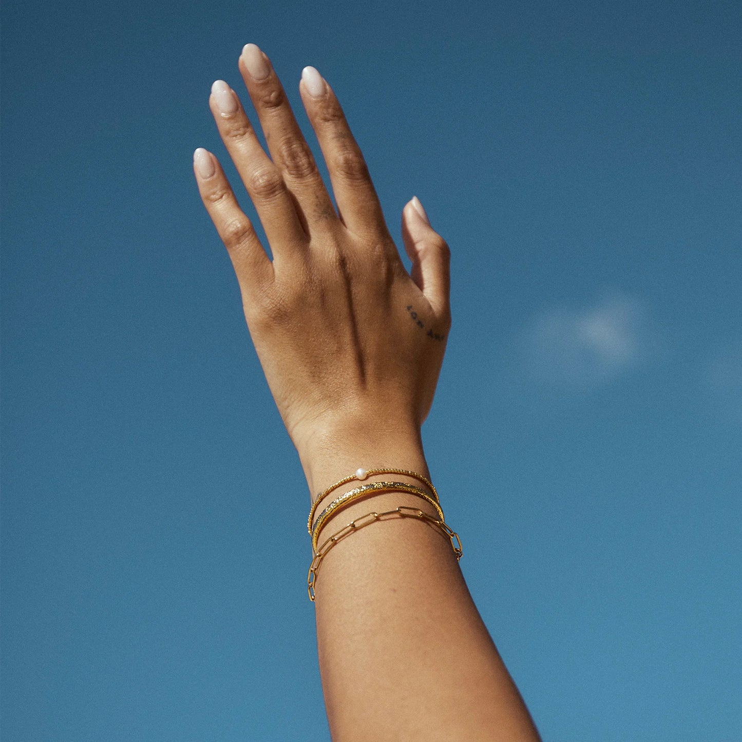 Glam and gold with a cute pearl to match, the River Bracelet is a stacking staple. You won’t know how you lived without it!