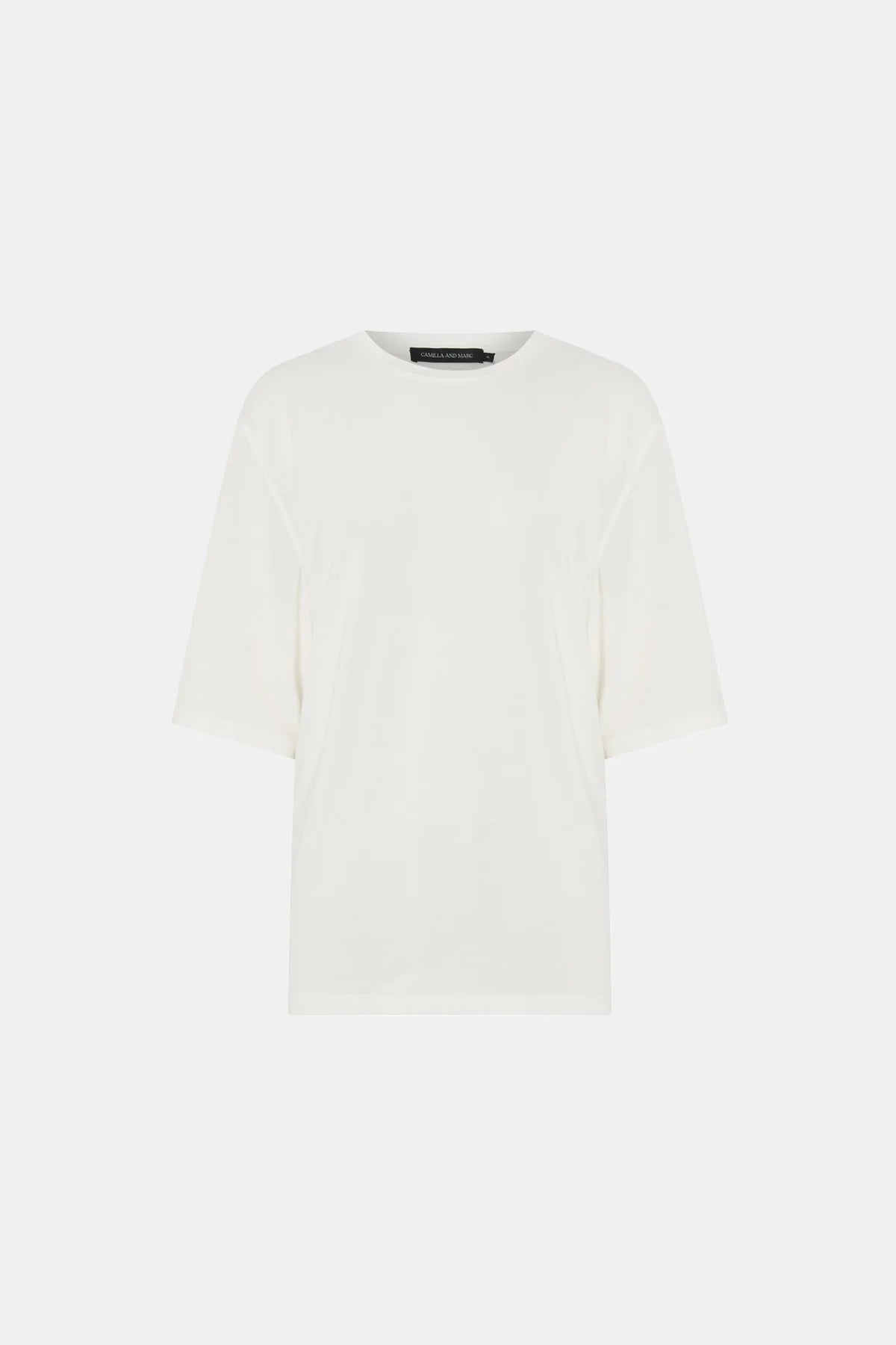 The Felton Draped Back Tee is crafted from a cotton blend in an oversized short-sleeved silhouette. This tee features a low back drape at the waist and a narrow coverstitch at the hem.