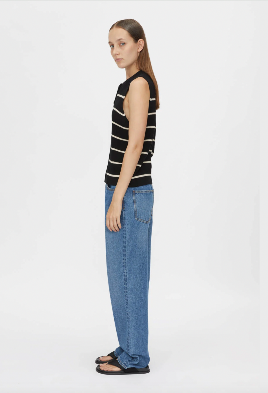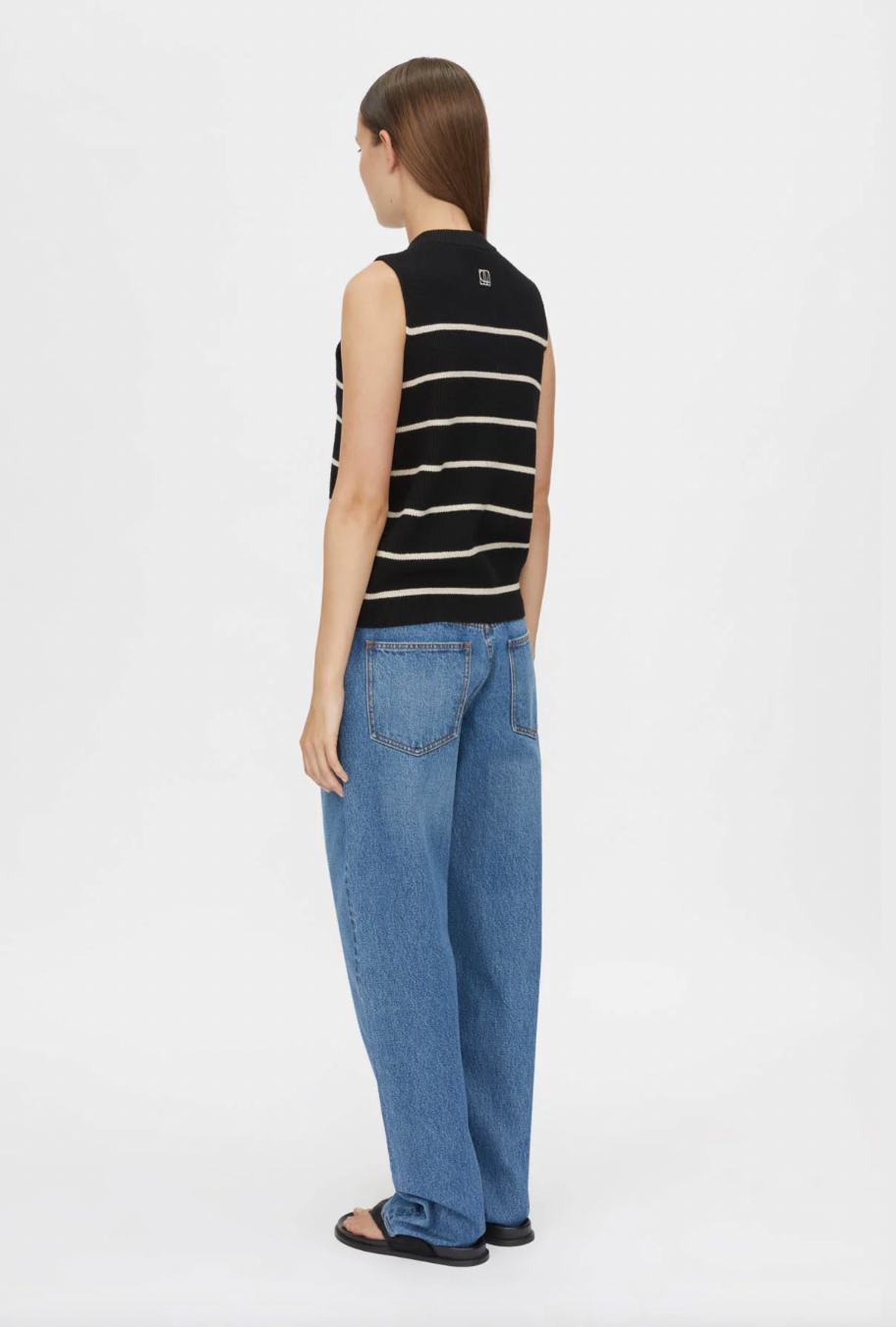 CAMILLA AND MARC Gale Button Up Sleeveless Cardigan in Black Beige Stripe.
