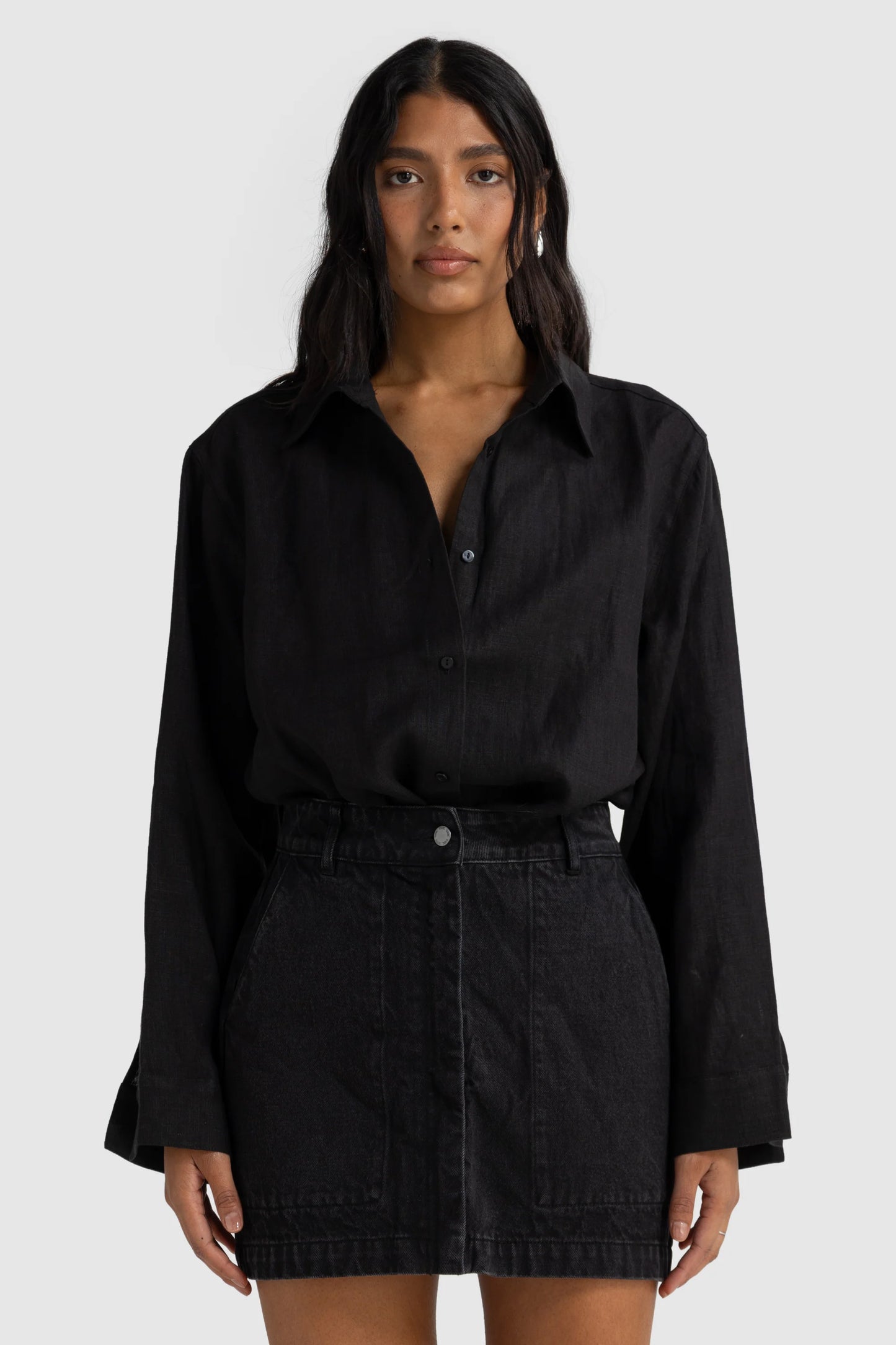 The Harley Denim Skirt offers a modern update to the classic denim mini. Featuring a structured silhouette with a high-rise waist and an A-line cut that flatters the body. The design is complete with front patch pockets and subtle seam detailing. Pair it effortlessly with a linen shirt or a fitted tank for an elevated everyday look.