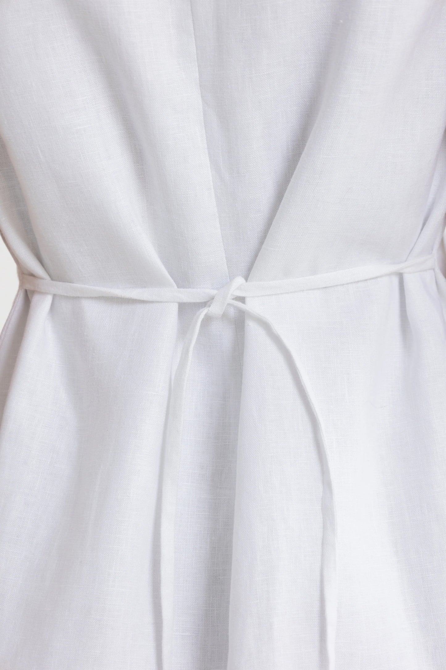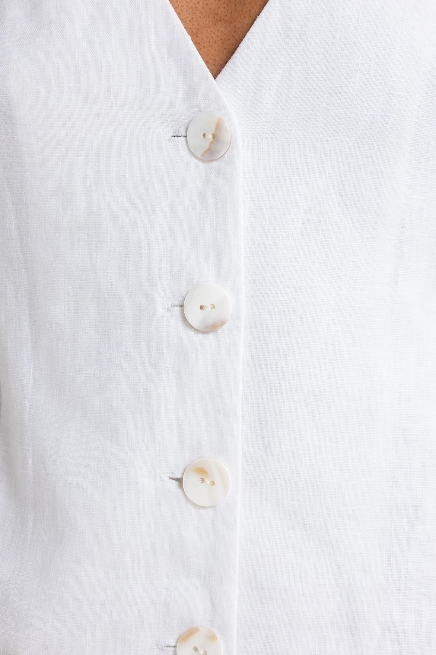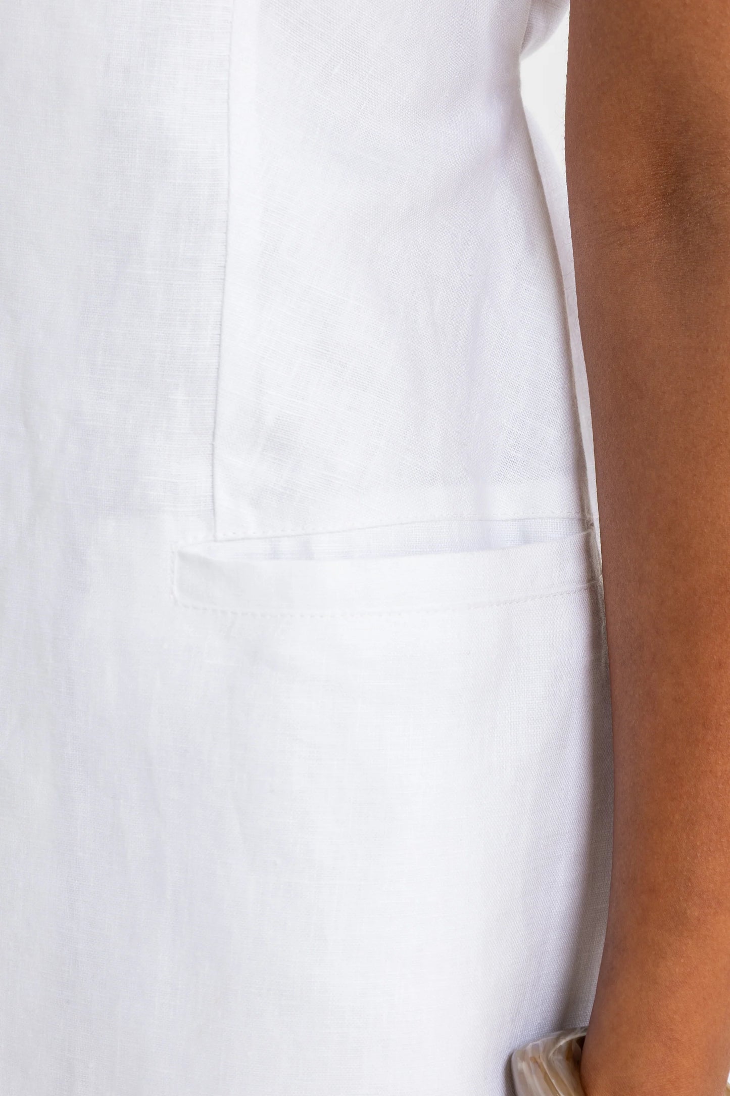 Timeless and effortlessly cool, the Koda Linen Mini is your go-to for warm-weather dressing. Made from 100% linen and fully lined, it features a flattering V-neckline, contrast buttons, and a clean, structured silhouette. A fabric tie at the back lets you cinch the waist for a more tailored fit. Style with heels or sandals for a versatile look.