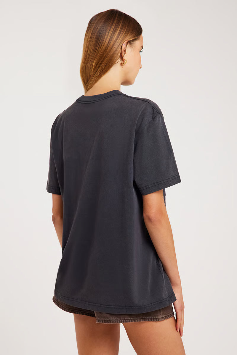 Bold lines. Casual rhythm. The Leopard Collegiate Tee by Ena Pelly is crafted from a soft cotton blend in vintage black, offering a boxy, relaxed silhouette with a drop shoulder for effortless style. Featuring collegiate-inspired leopard graphics with raised plastisol detailing