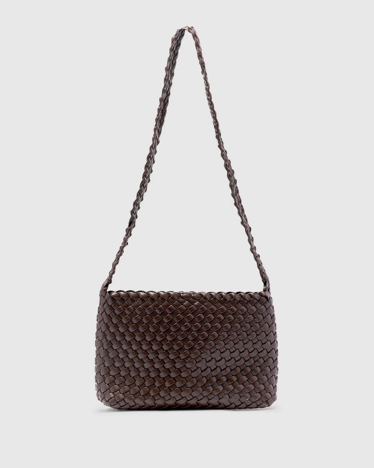 A modern interpretation of artisanal craft, the Luca Woven Crossbody in Chocolate features an intricate hand-woven texture that softens a structured silhouette. Designed as a lightweight, hands-free style, making it a perfect companion for daily errands or evenings out.