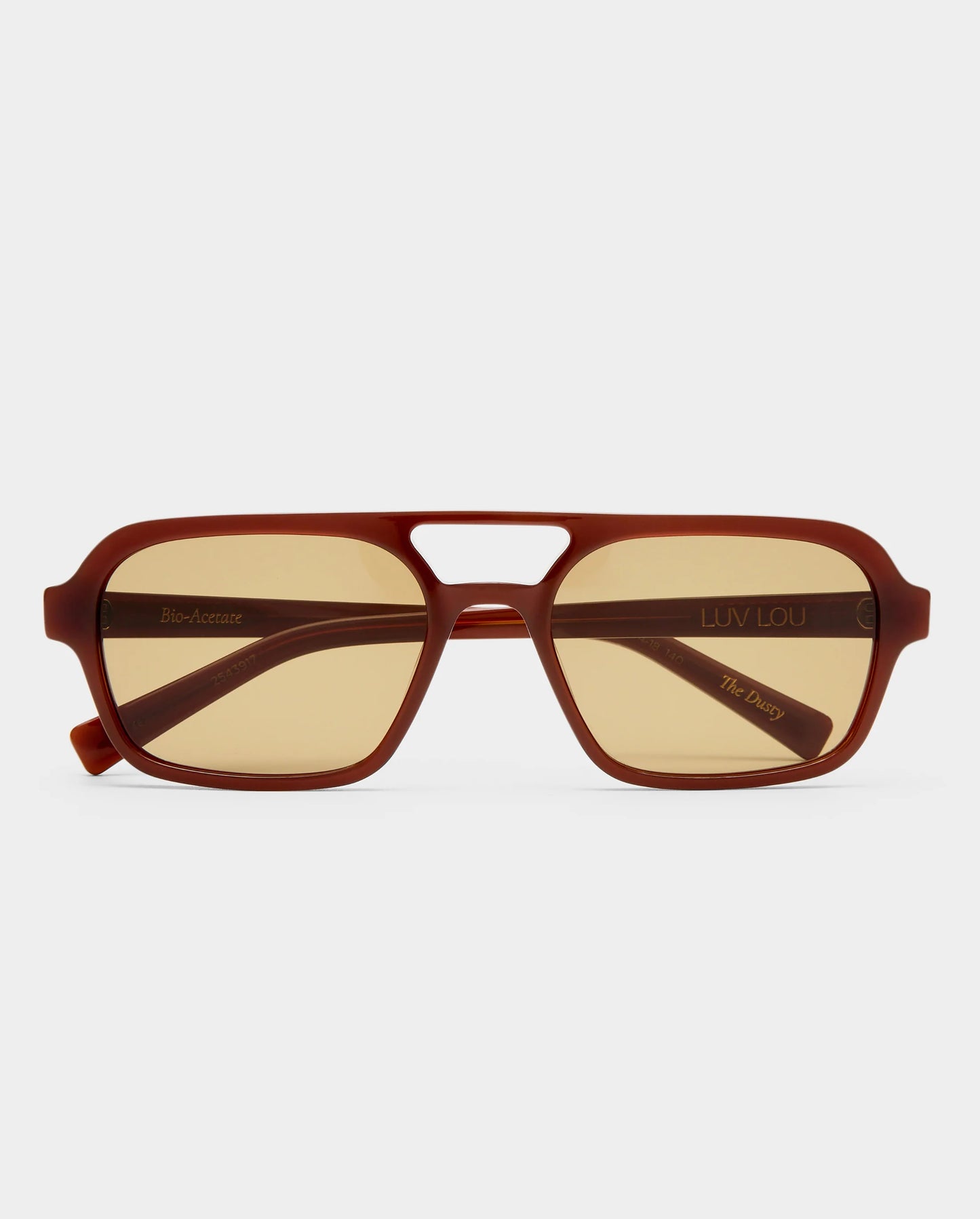 The Dusty is your true vintage aviator frame, large in structure but soft when shaping your face. The style features subtle gold rivets on the outer arm temple and is a nod to the 70's era.