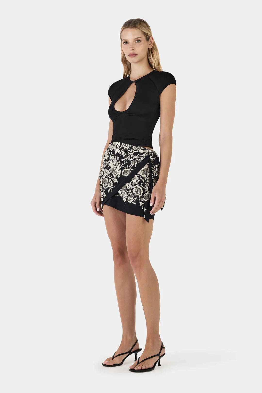 The Aluna Skirt is a placement-printed wrap skirt with an adjustable front and side-seam invisible zipper. Featuring back darts for shaping and a high-to-mid waist fit the Aluna is a chic printed mini to elevate the every day. Pair with the matching Lucas Shirt for a complete look.