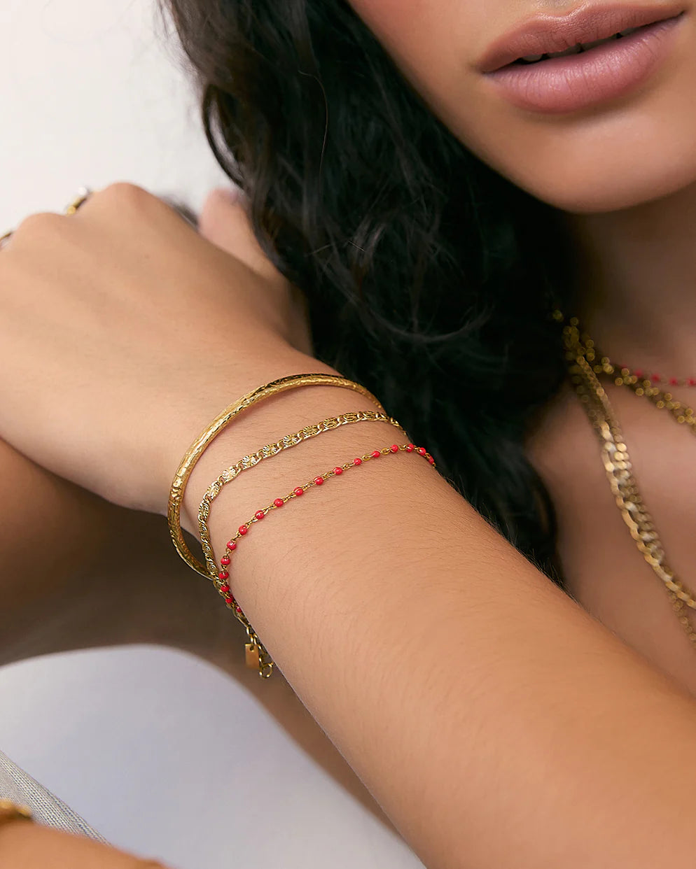 Meet the Peggy Bracelet, your new go to for a pop of fruity fun. With its cherry coloured enamel beads and dainty design, Peggy adds an instant hit of colour to any stack. Light, vibrant, and easy to style, this bracelet layers effortlessly or stands sweetly on its own. Available in Cherry, Kiwi, and Blueberry.