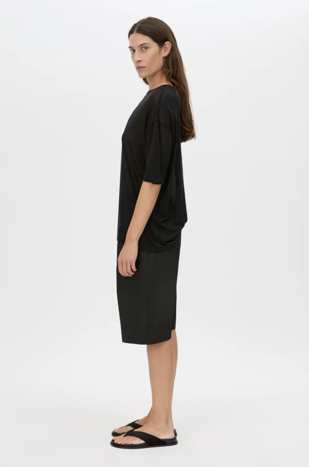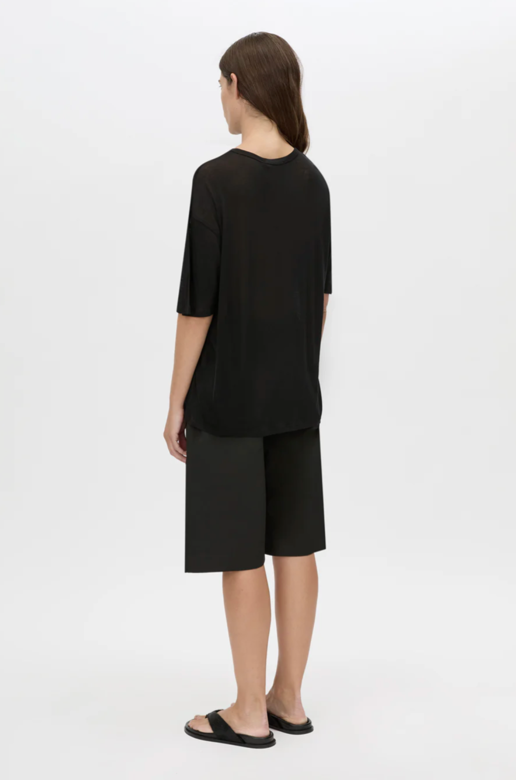 CAMILLA AND MARC Marjorie lightweight jersey oversized short sleeve black tee. Twin needle hem.