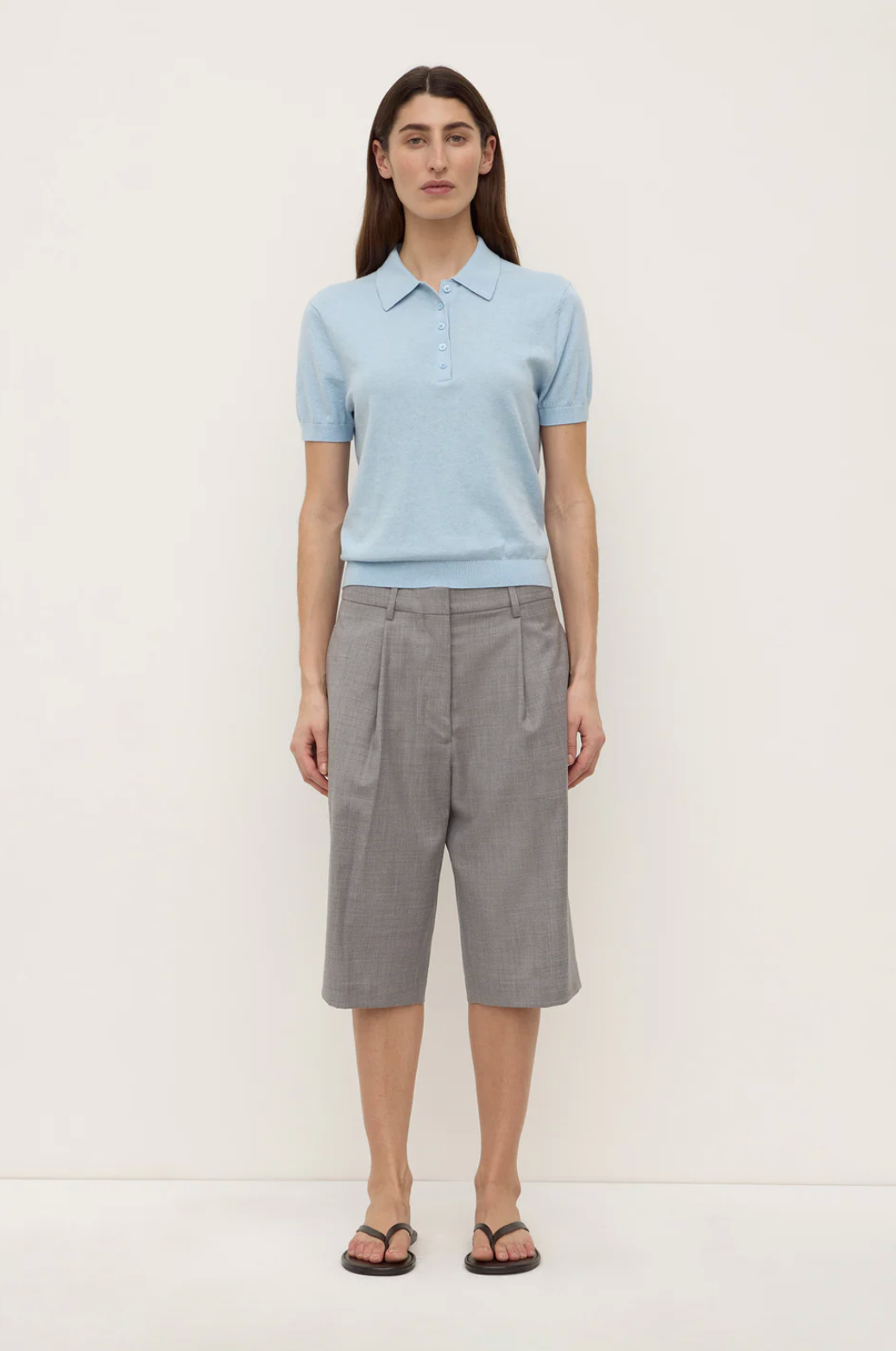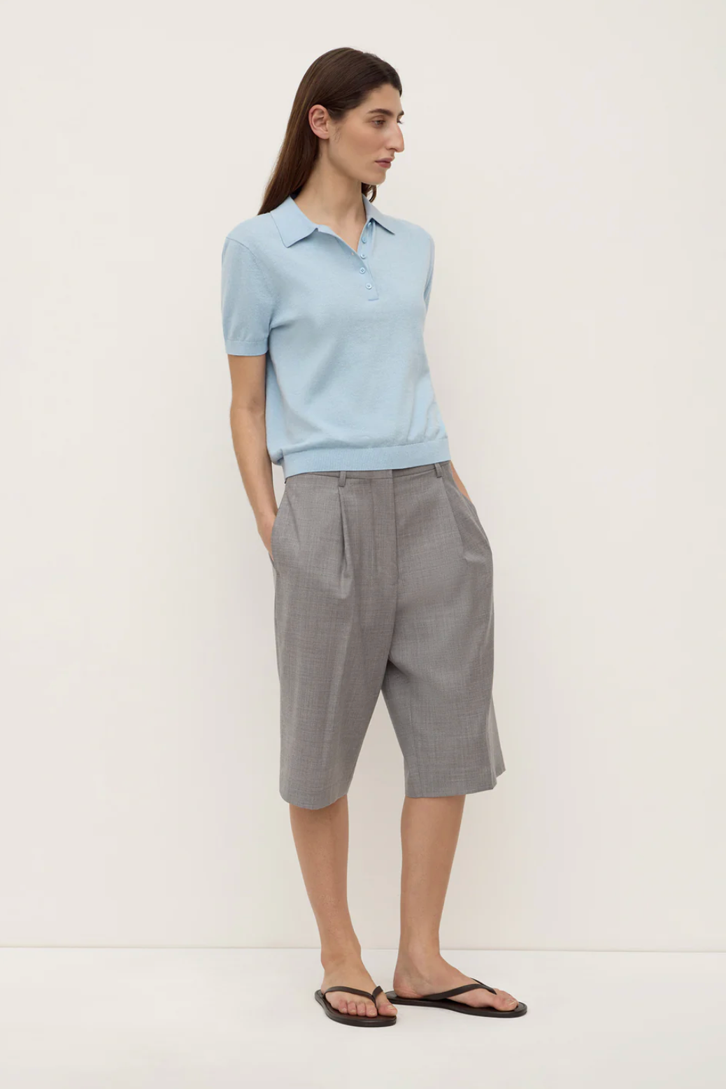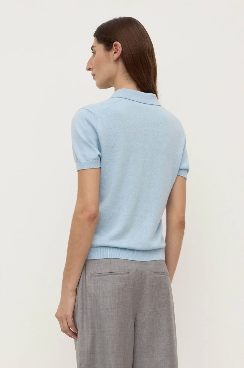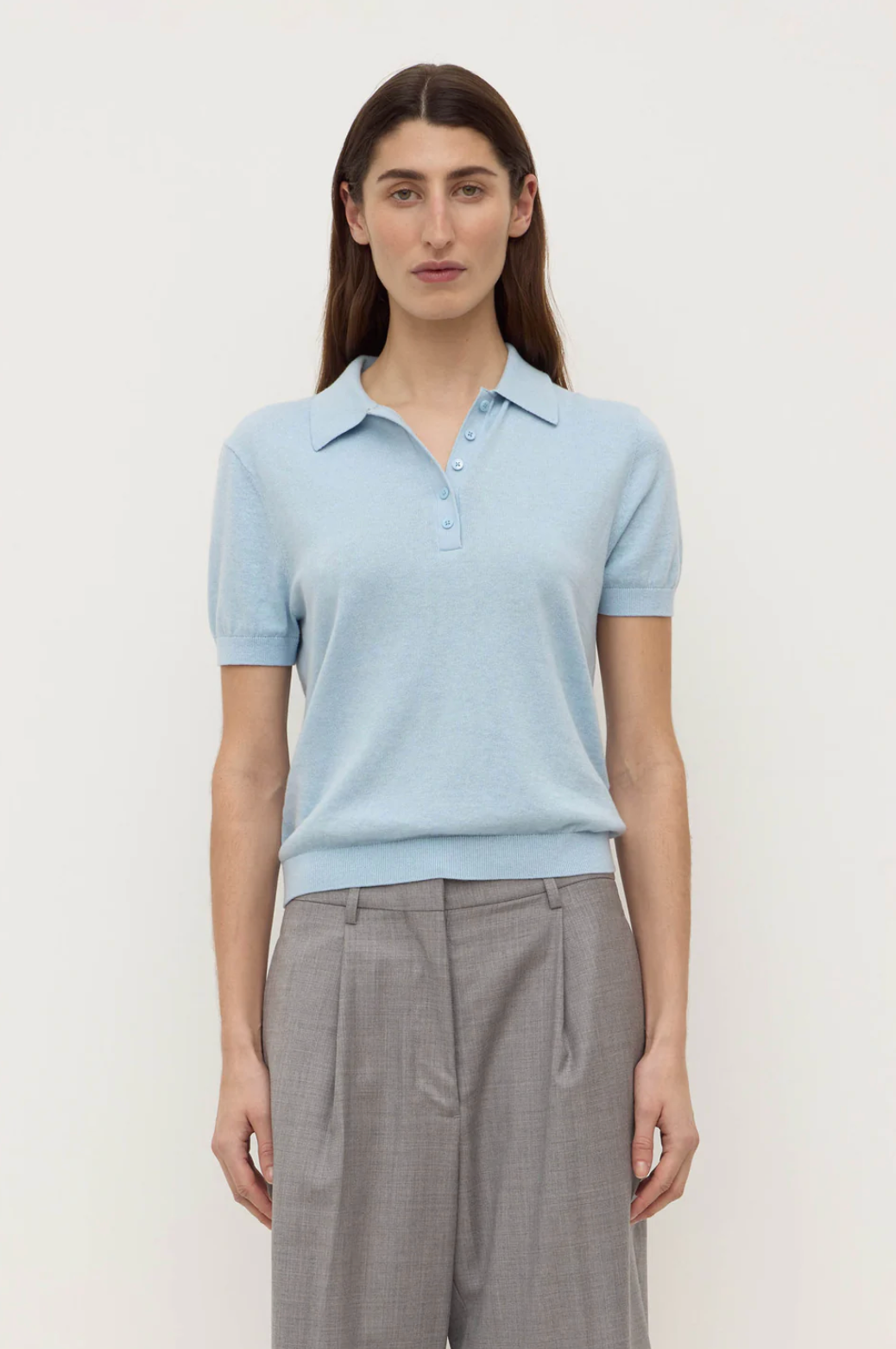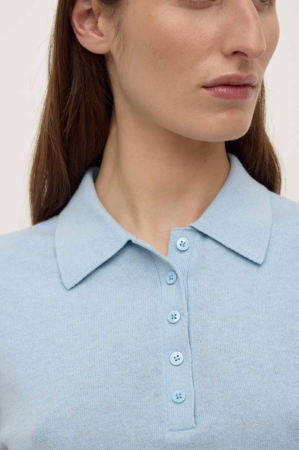The Sloane Cotton Cashmere Polo in salt is a slim polo knit made from a cotton-cashmere blend with ribbed sleeve and hem detailing.
