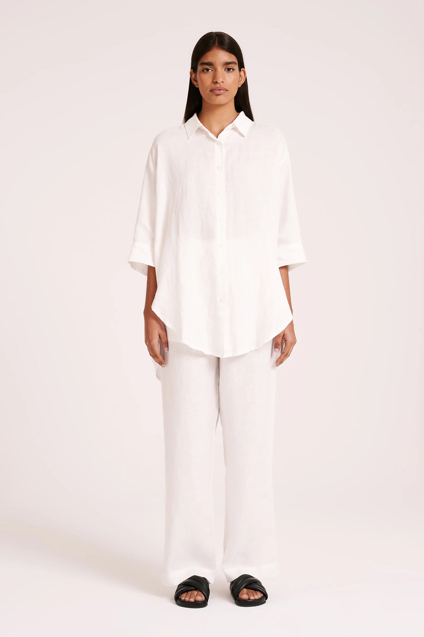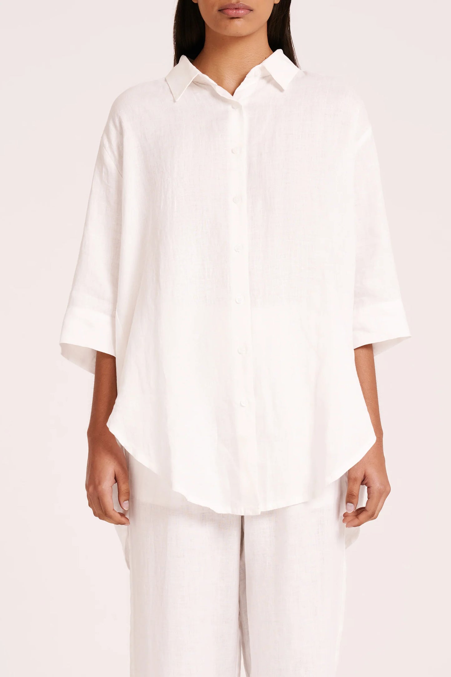 Lounge Linen Longline Shirt - White