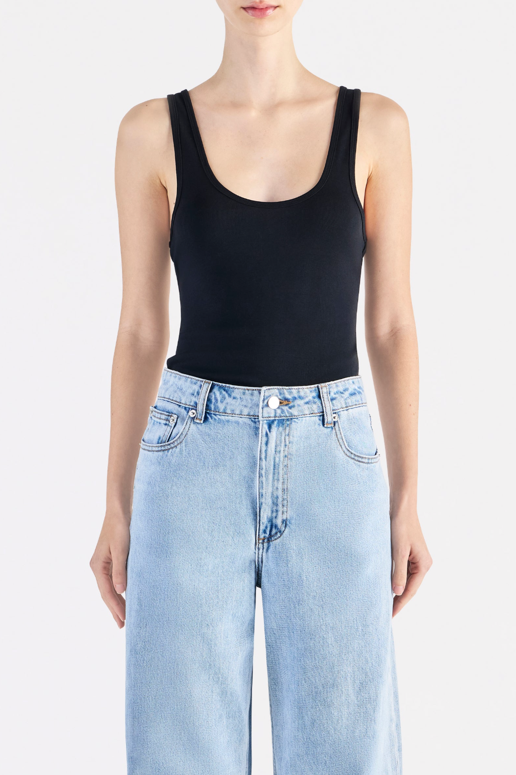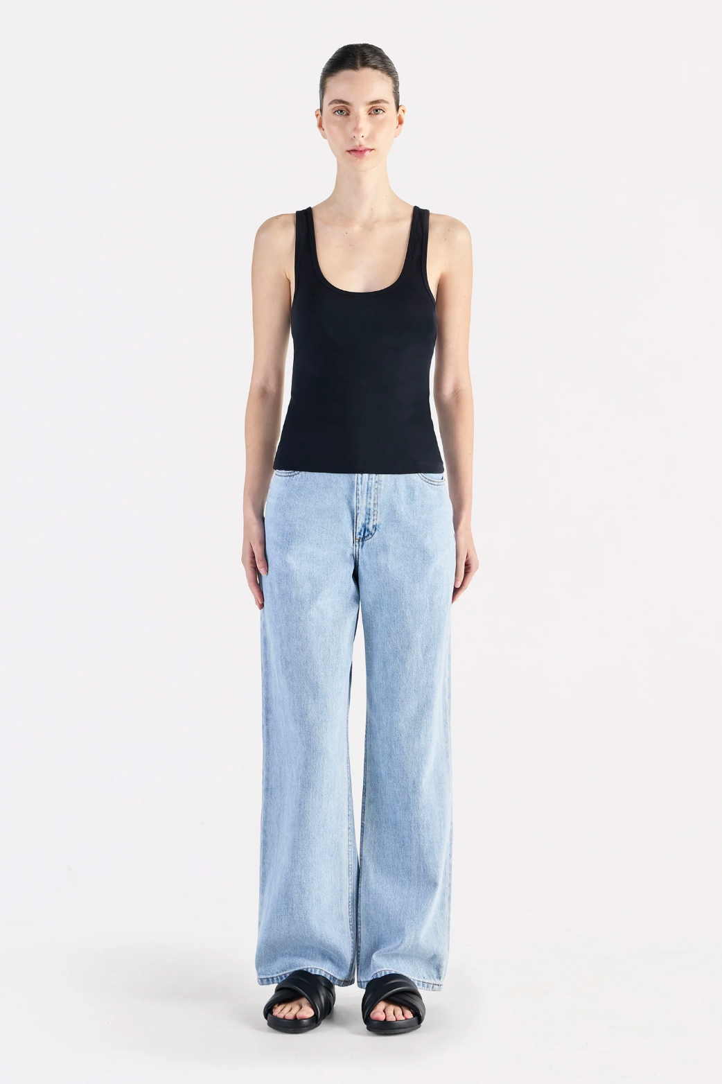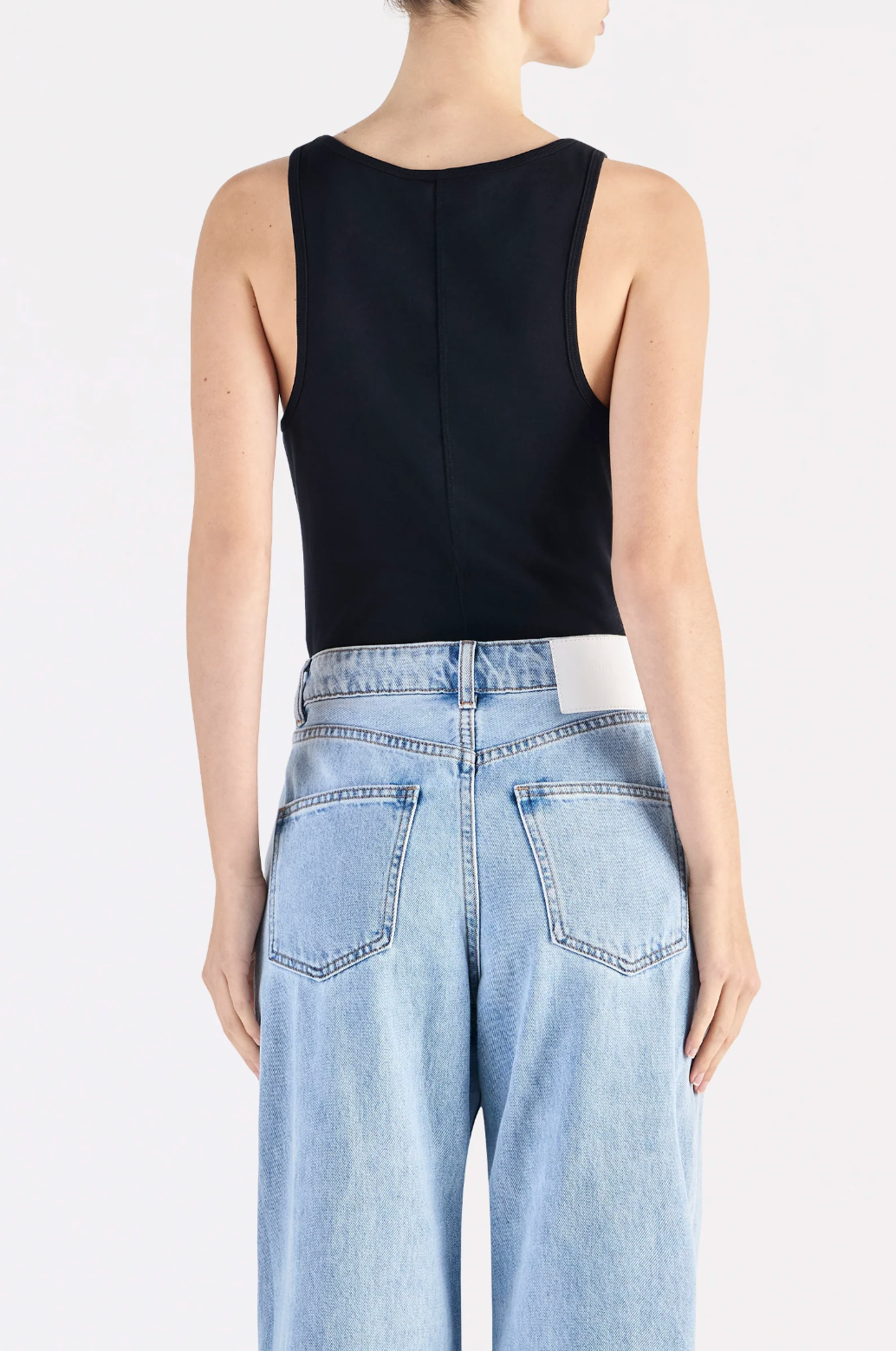 The Organic 90s Singlet is made from a lightweight organic cotton jersey, which has a soft, breathable hand feel. The silhouette is a classic slim fitting tank finishing on the hips. Features include thin straps and low scoop neckline.