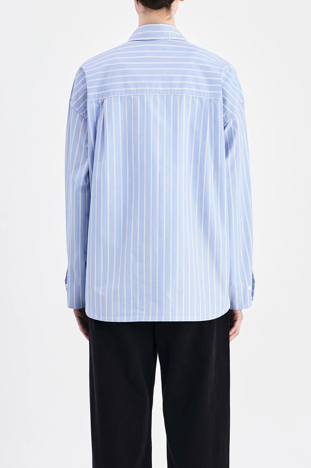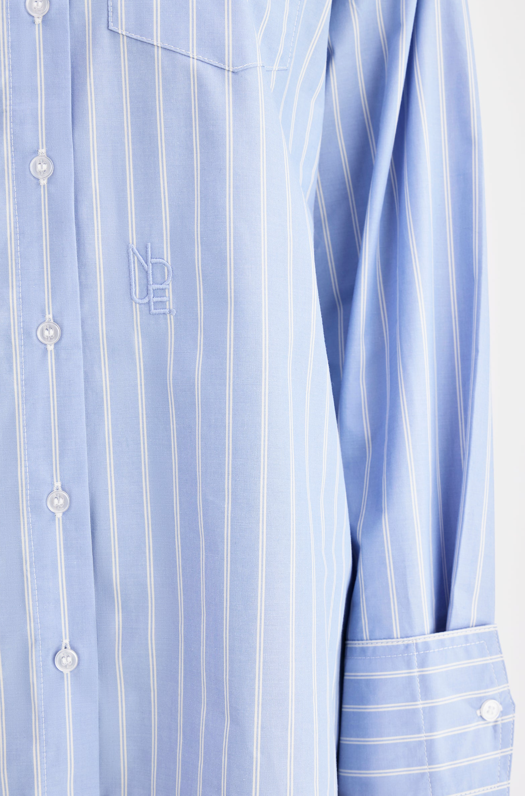 The Organic Poplin Shirt is made from a organic cotton poplin which has be washed for a smooth, crisp hand feel. The silhouette is oversized throughout with length finishing on the hips. Features include front patch pockets, a large cuff and Nude Lucy branded buttons.