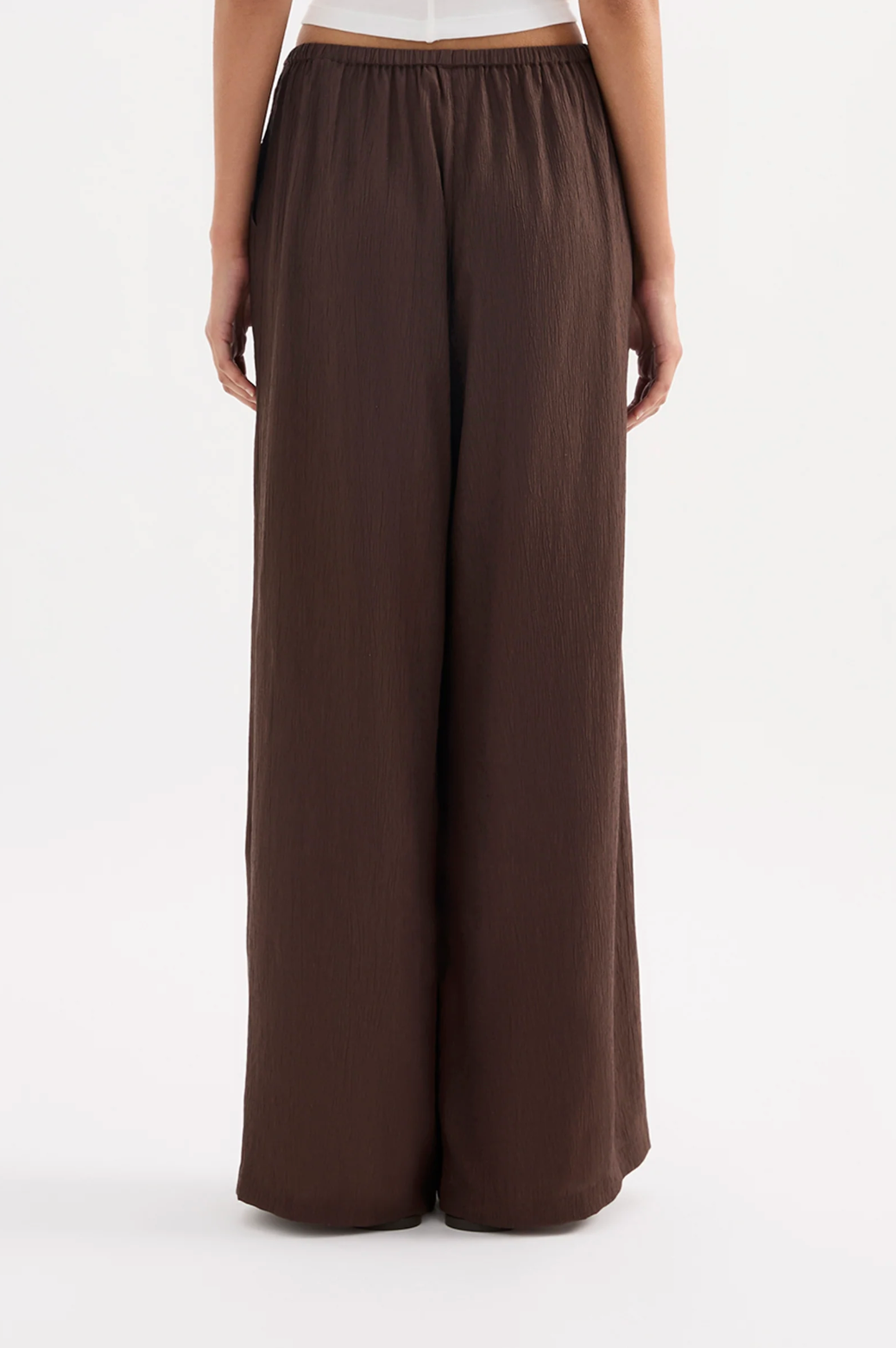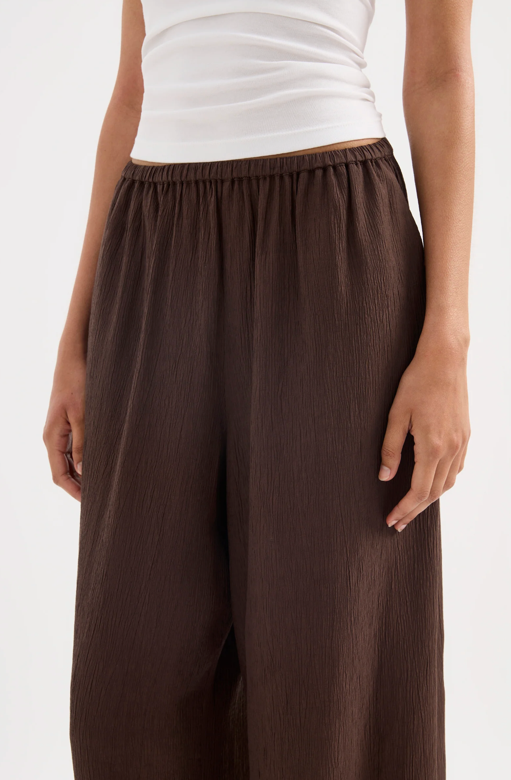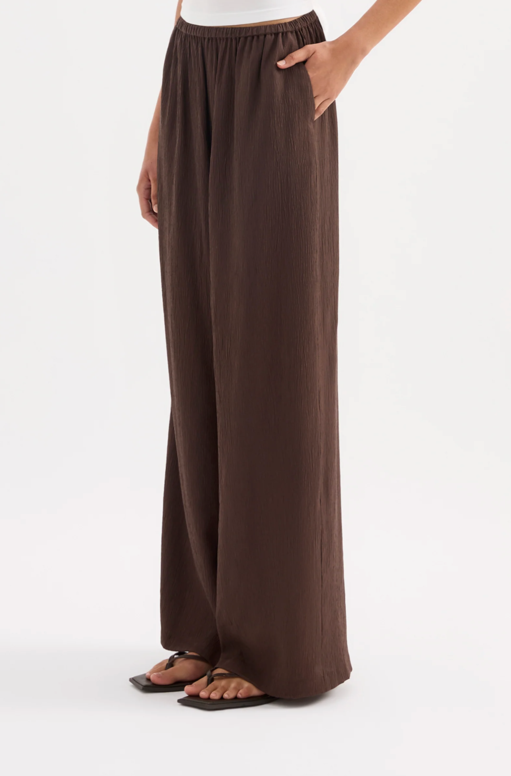 The Winfield Pant is made from a crinkle textured fabric which has a dry, lightweight hand feel. The silhouette is relaxed with a wide full length leg. Features include an elasticated waistband and side seam pockets.