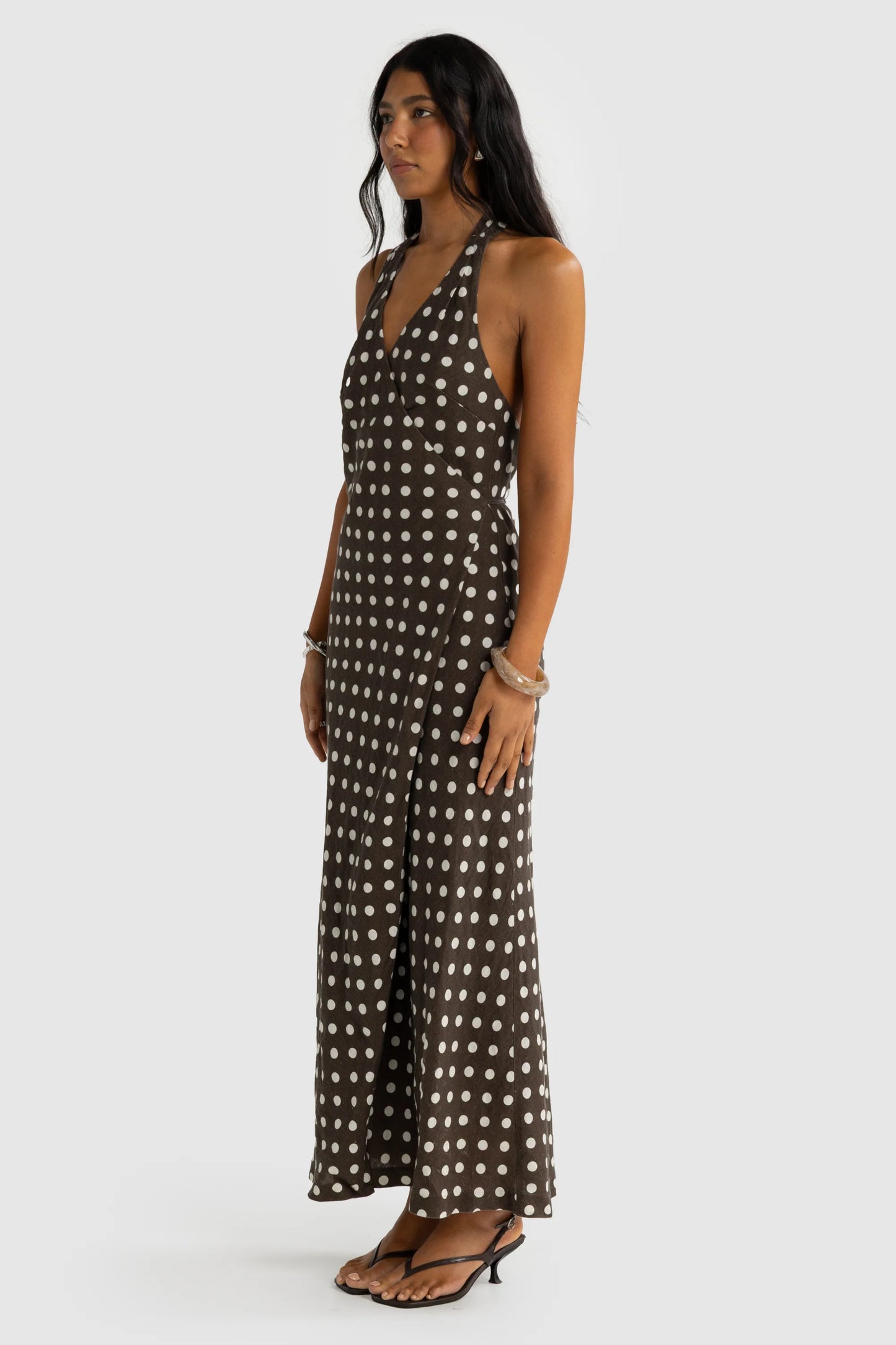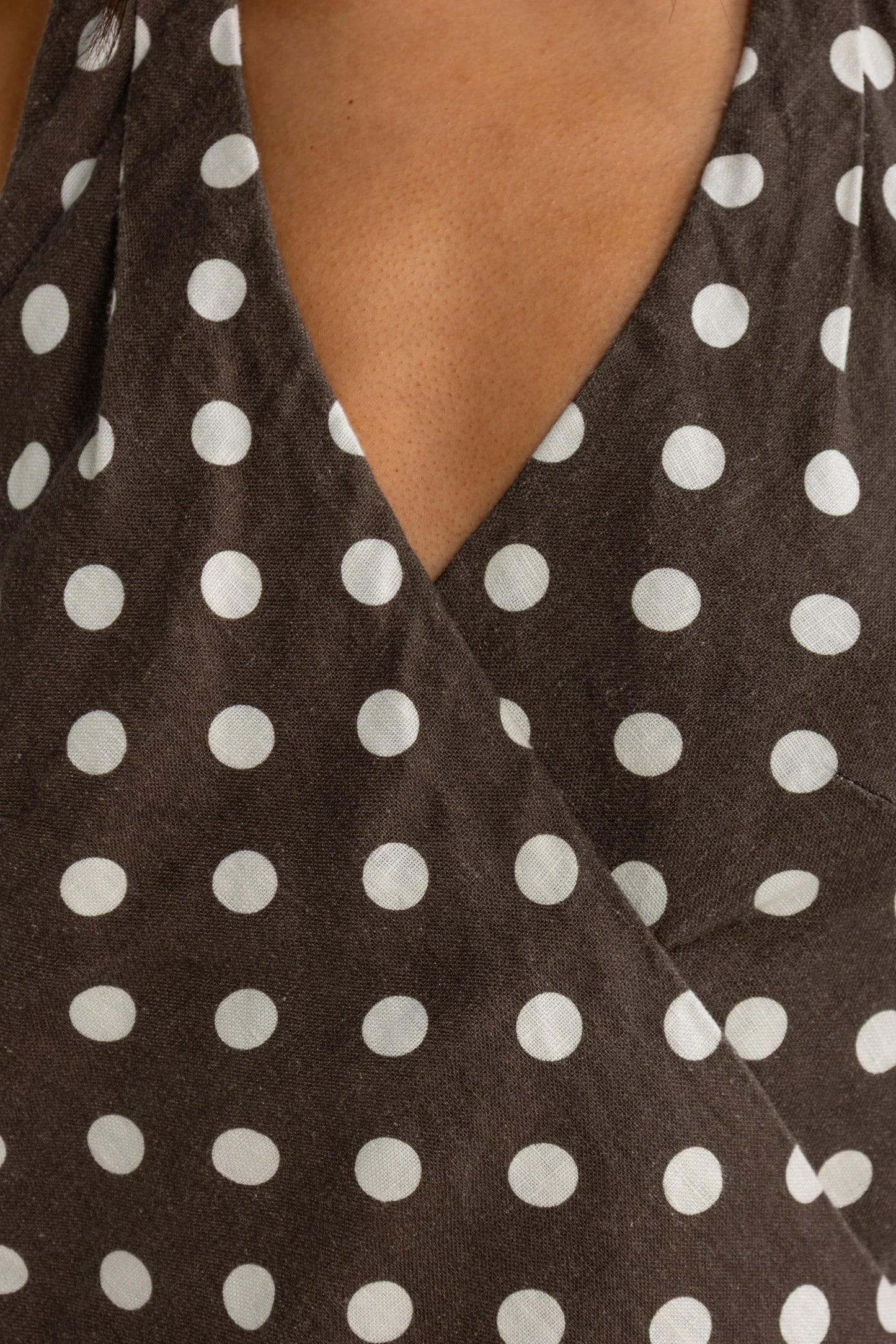 Elise Linen Wrap Full Length Dress - Carob Polkadot