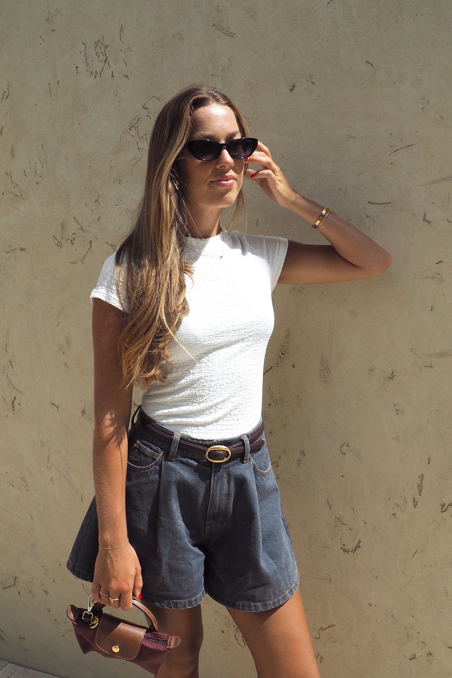 Meg wears a size XS and is usually an Aus 6-8. She is 169cm tall.