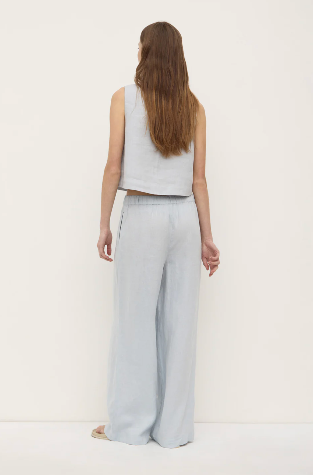 Regular price $90.00 AUDCrafted from a breathable pure linen fabric, this pant is designed for everyday ease. Featuring an elasticated waistband and internal waist tie, they can be adjusted to your desired fit.