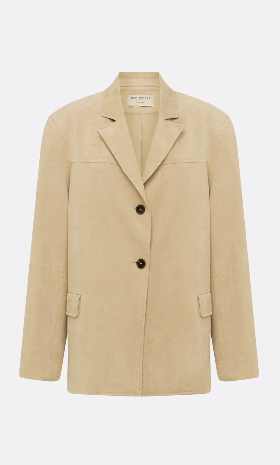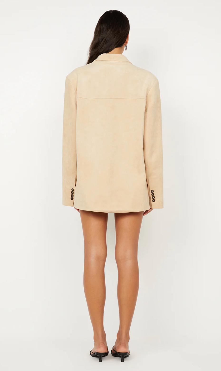 Regular price $410.00 AUDLyon Jacket in Nougat. This statement soft faux suede blazer, offers an oversized and relaxed silhouette, perfect for layering and adding effortless chic to any look.