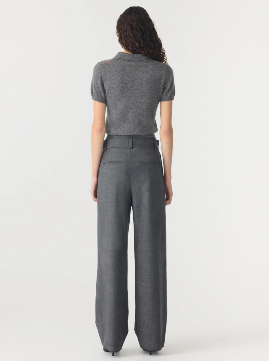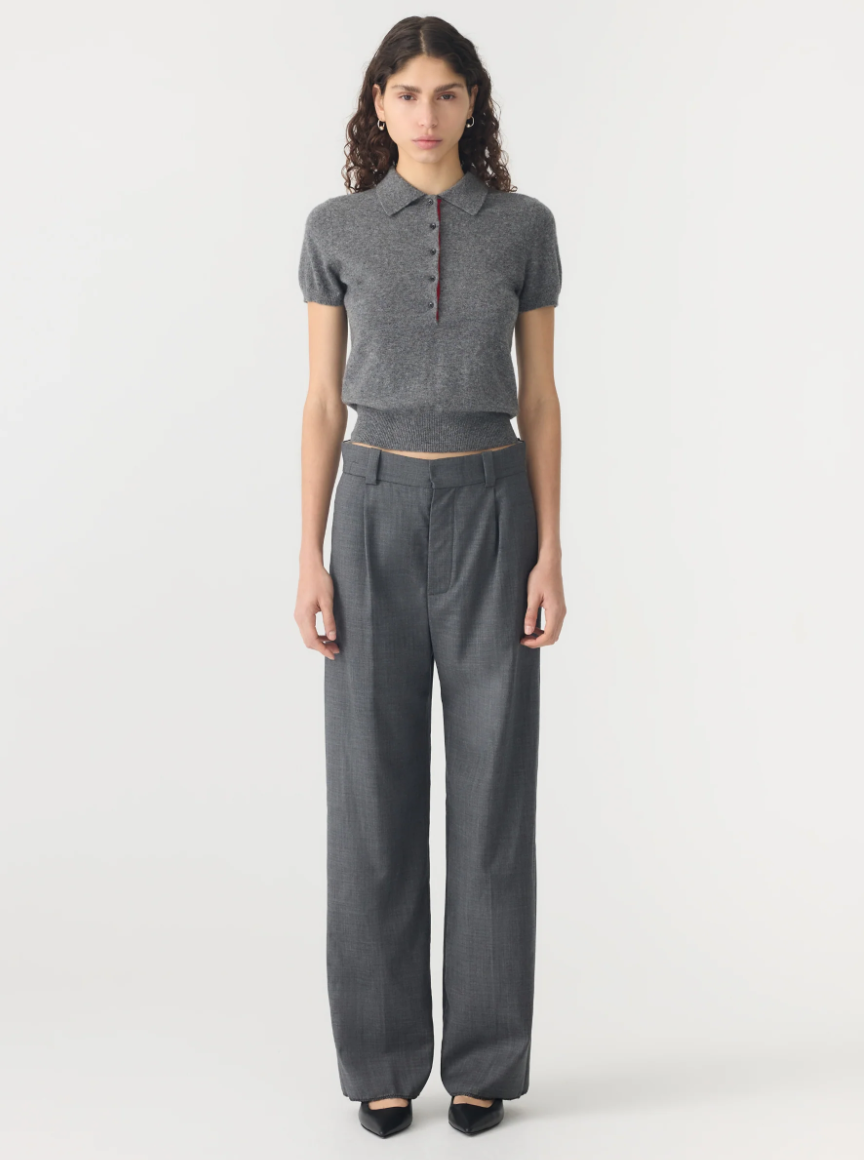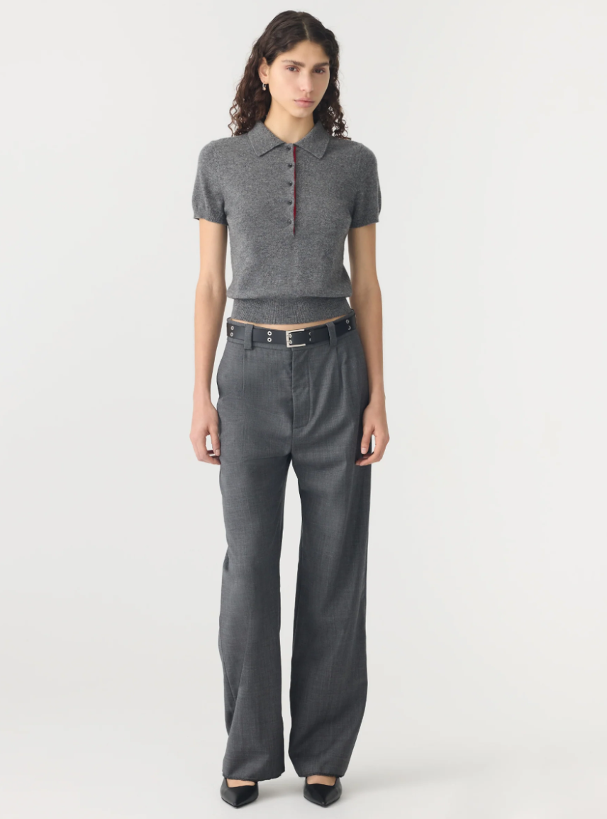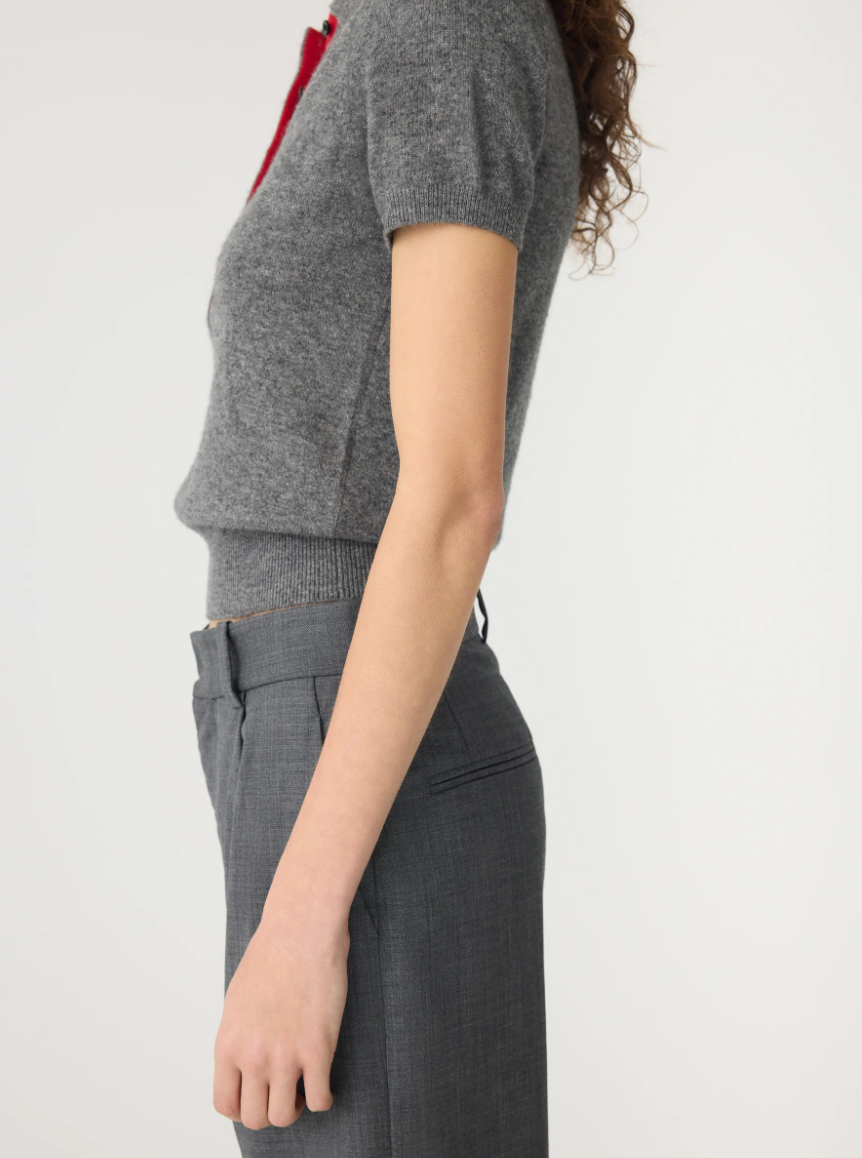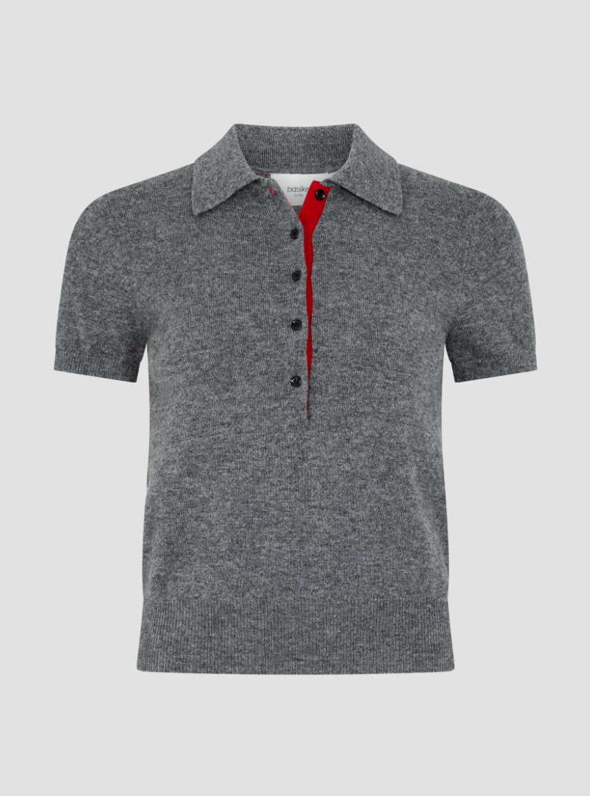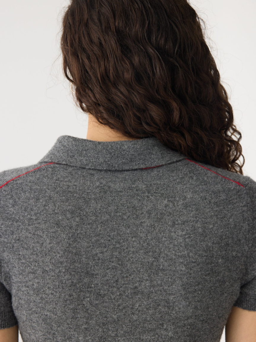 Wool Cashmere Slim Fit Polo - Dark Charcoal / Red