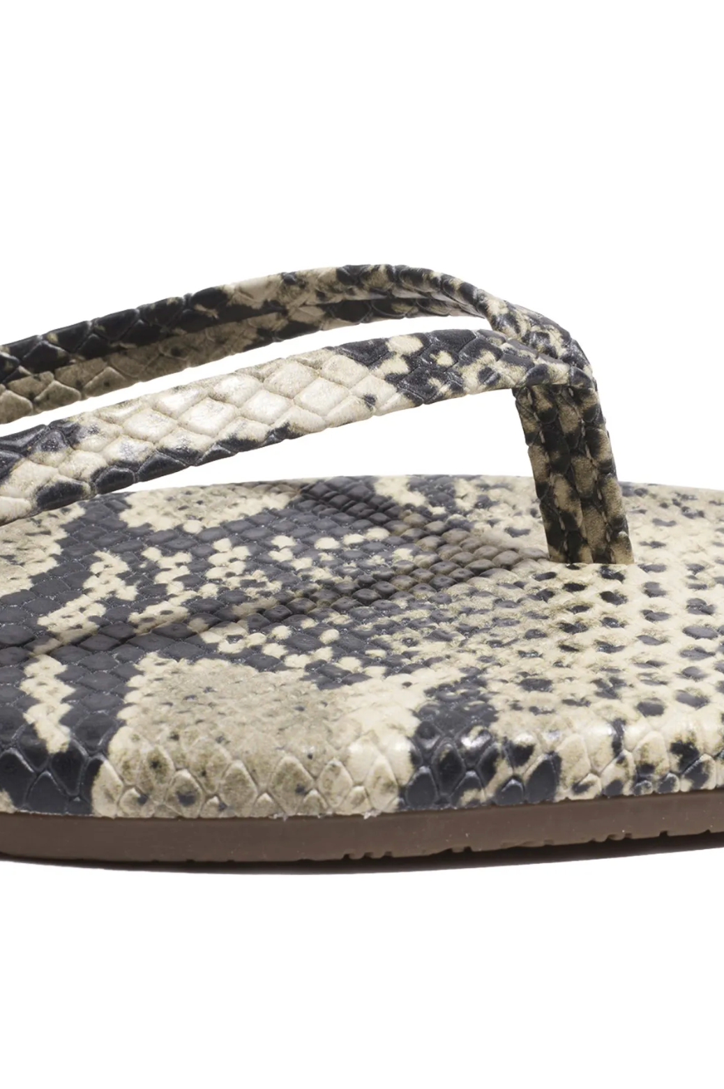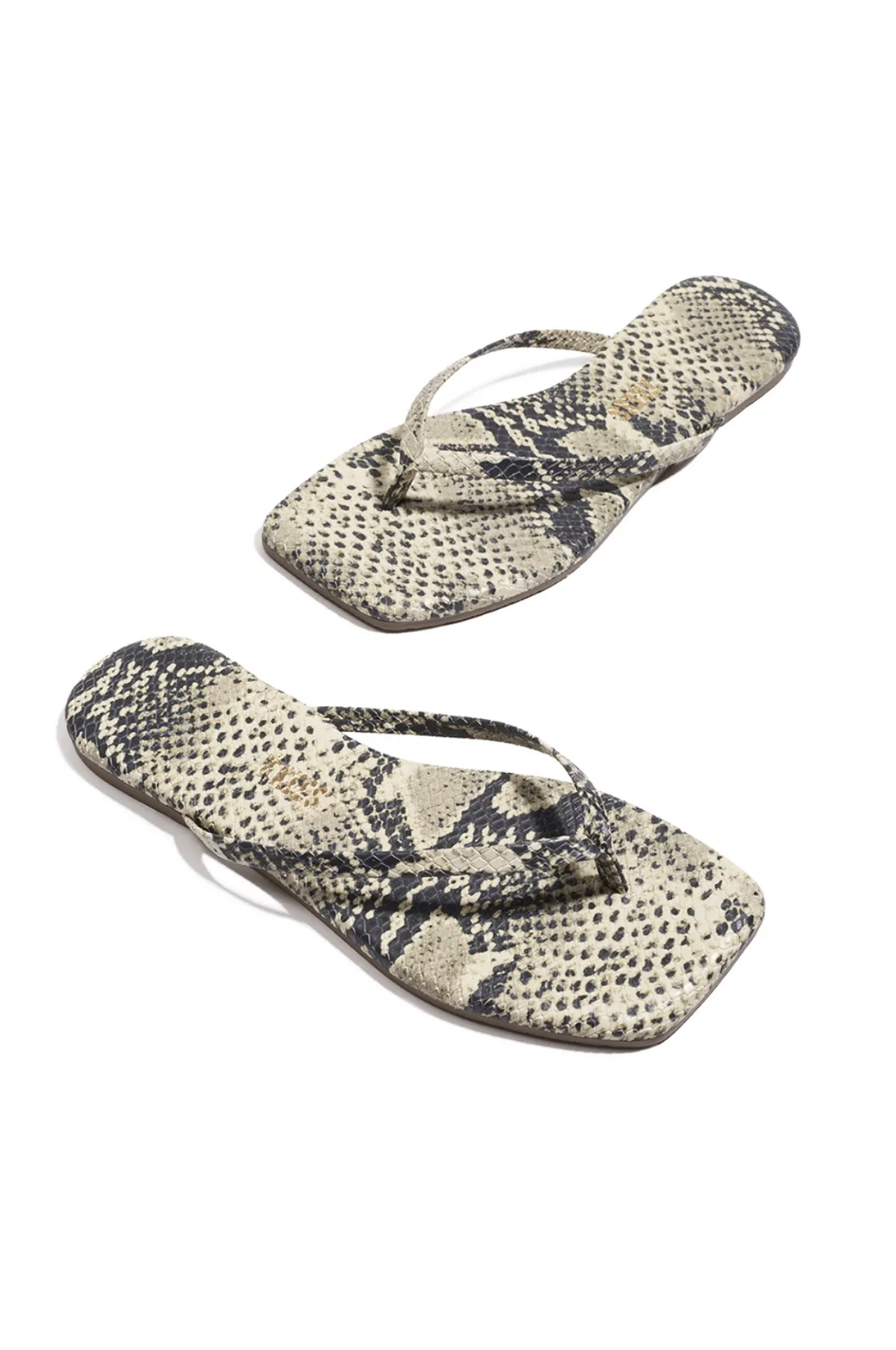 A snakeskin print on the style that started it all. Handcrafted from soft leather like material in a classic flip flop style. Love right out of the box; we added a cushioned insole and rubber outsole for extra comfort.