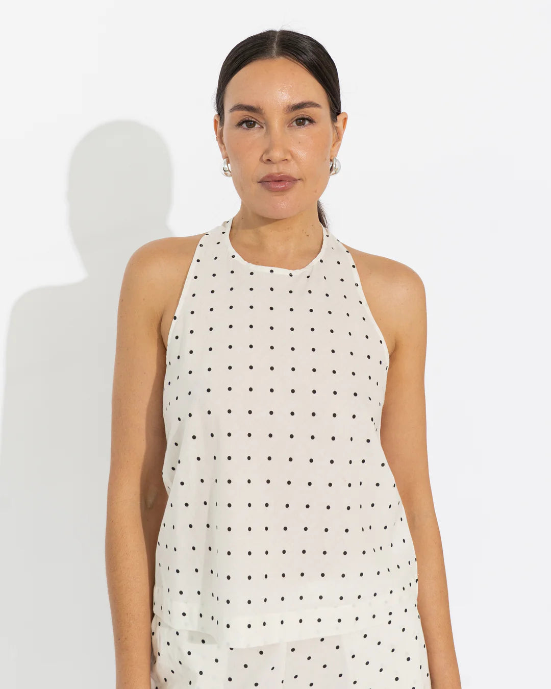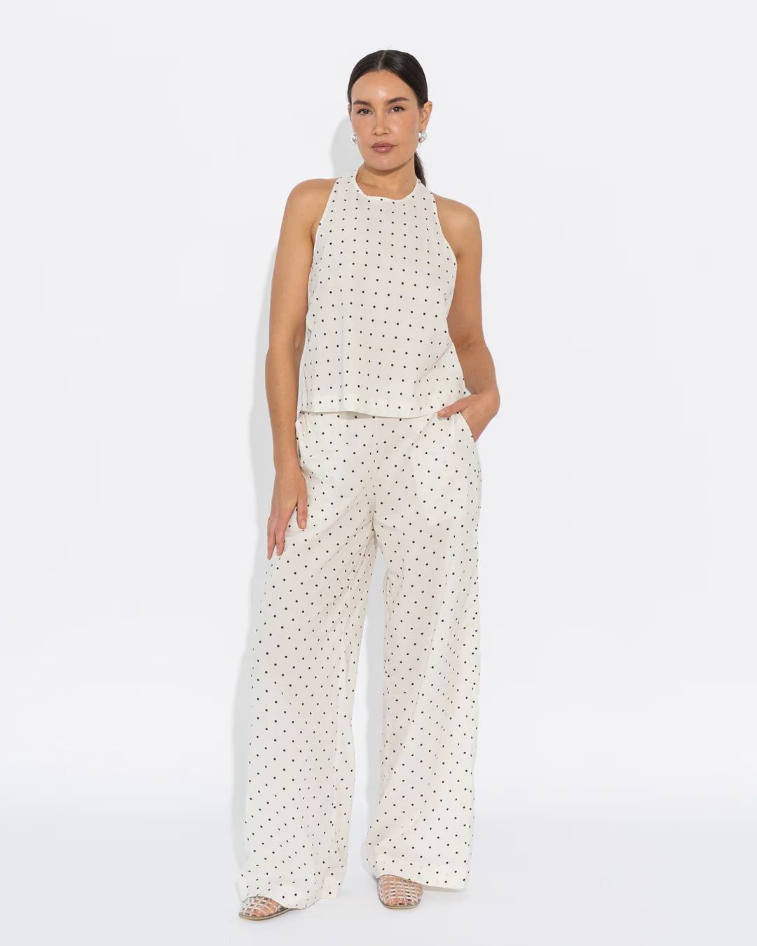 Elise Linen Wrap Full Length Dress - Carob Polkadot