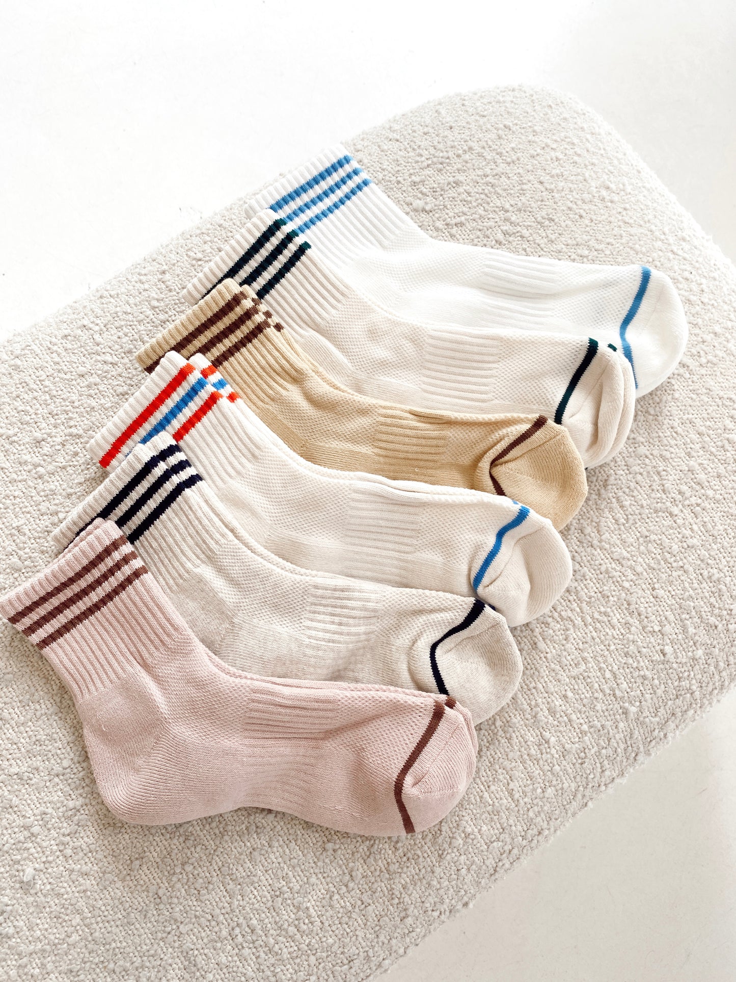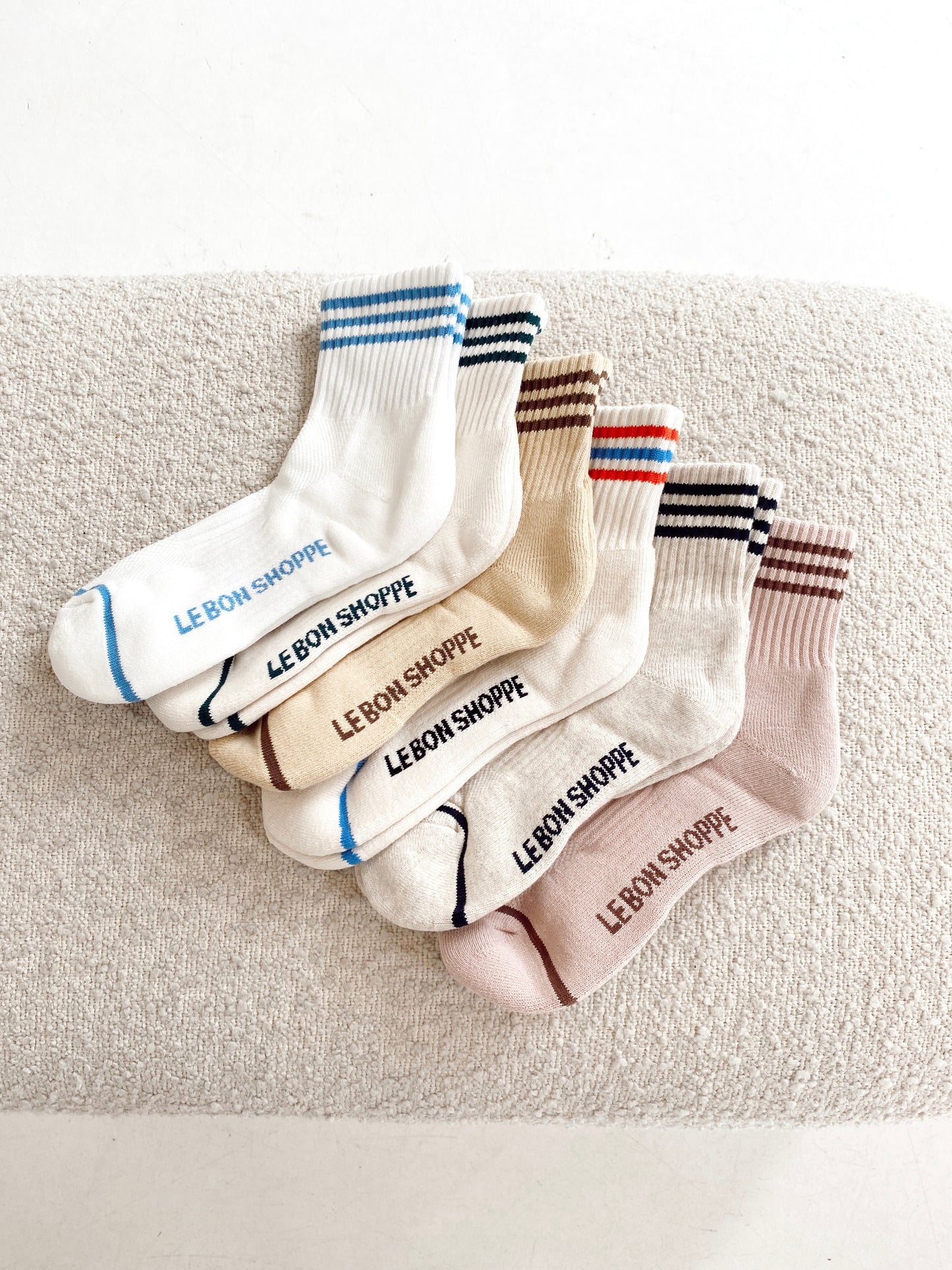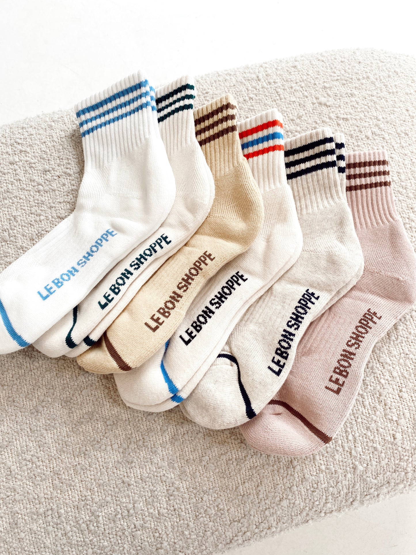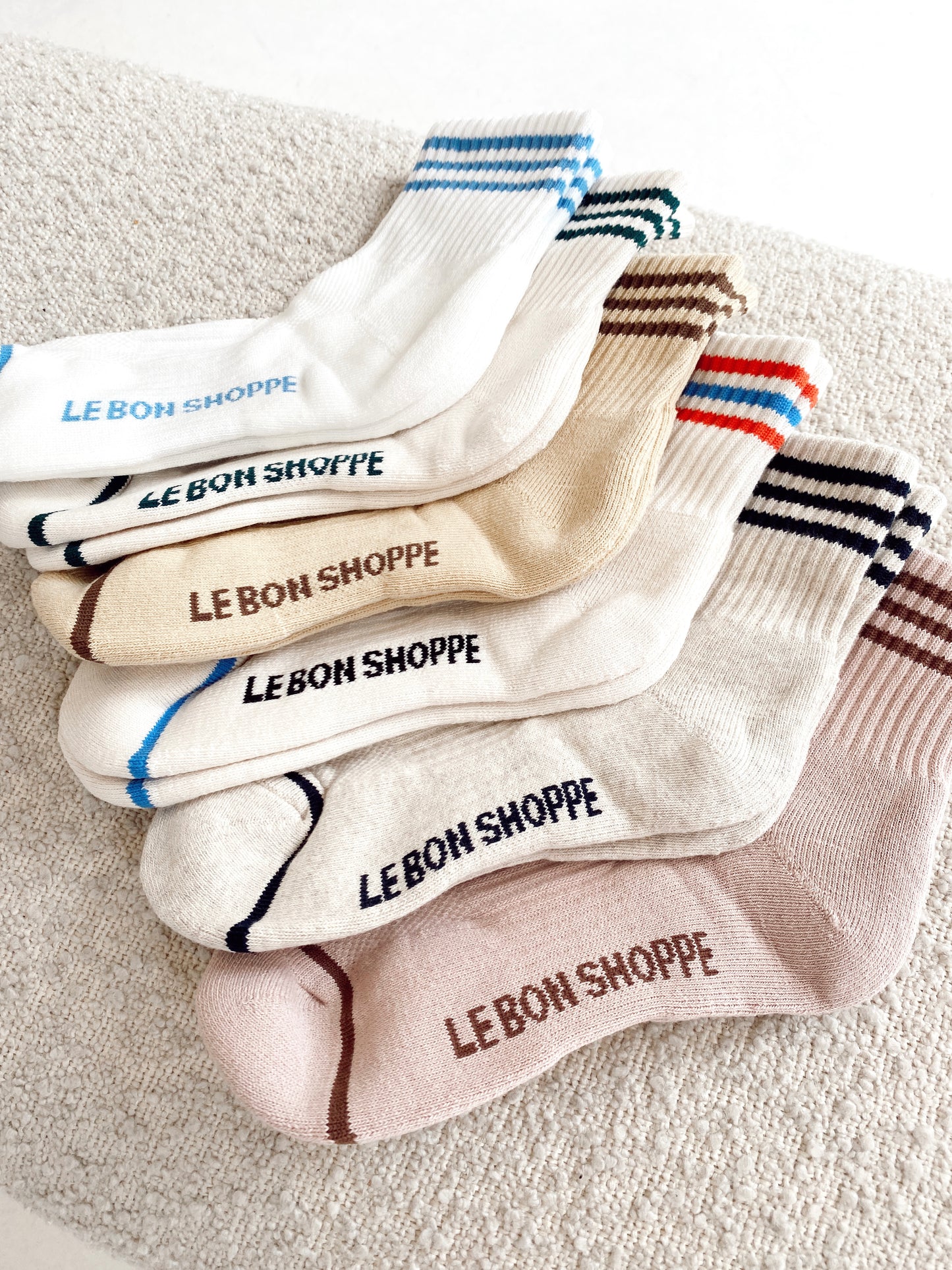 We love the Boyfriend Socks so much we decided she needed a sister, the Girlfriend Socks is the crew version of our original bestseller and classic. These beauties pair perfectly under cropped length pants, and lengthens legs for shorter looks.