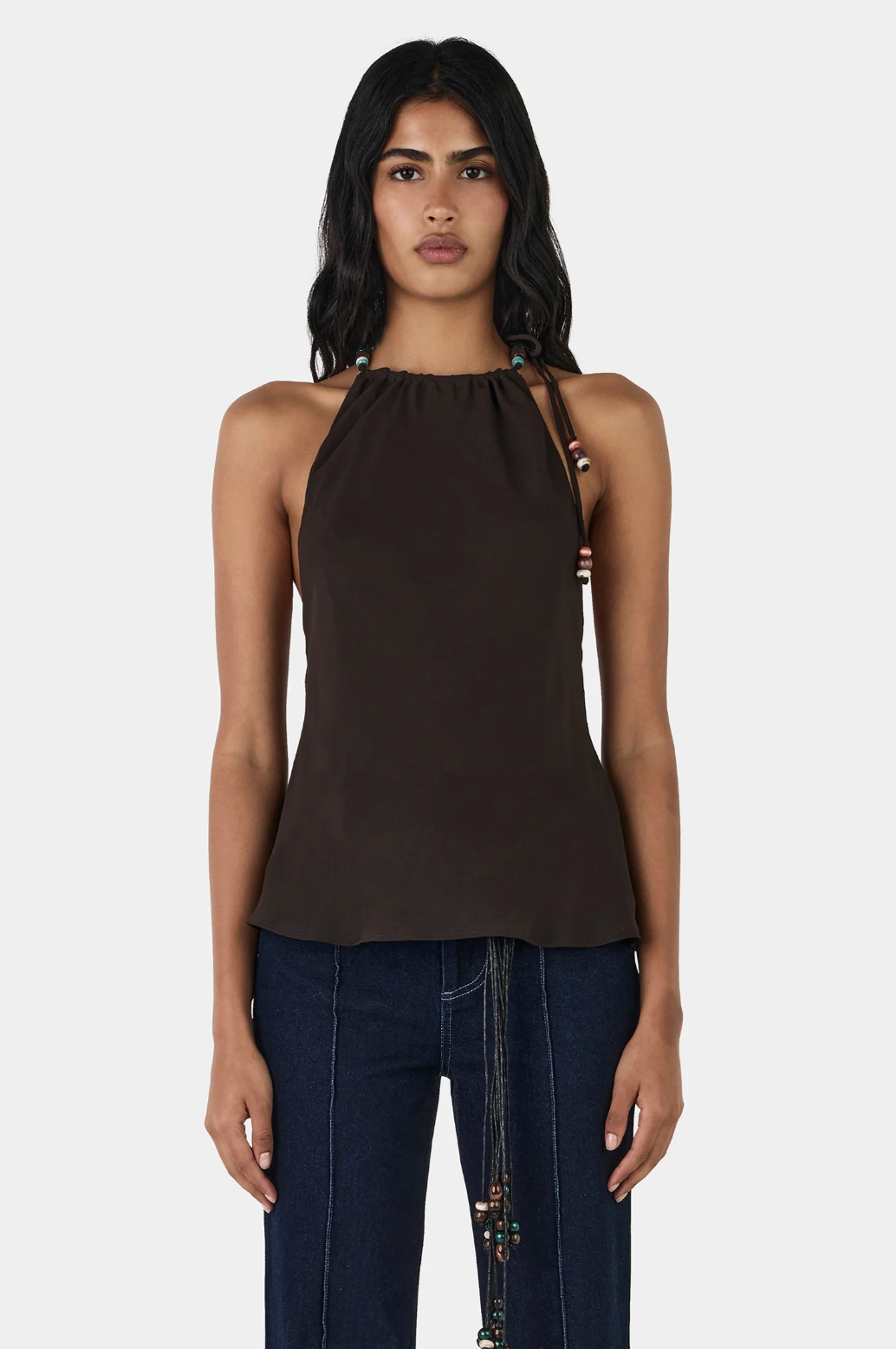 Elia Off Shoulder Twist Top - Chocolate Mint