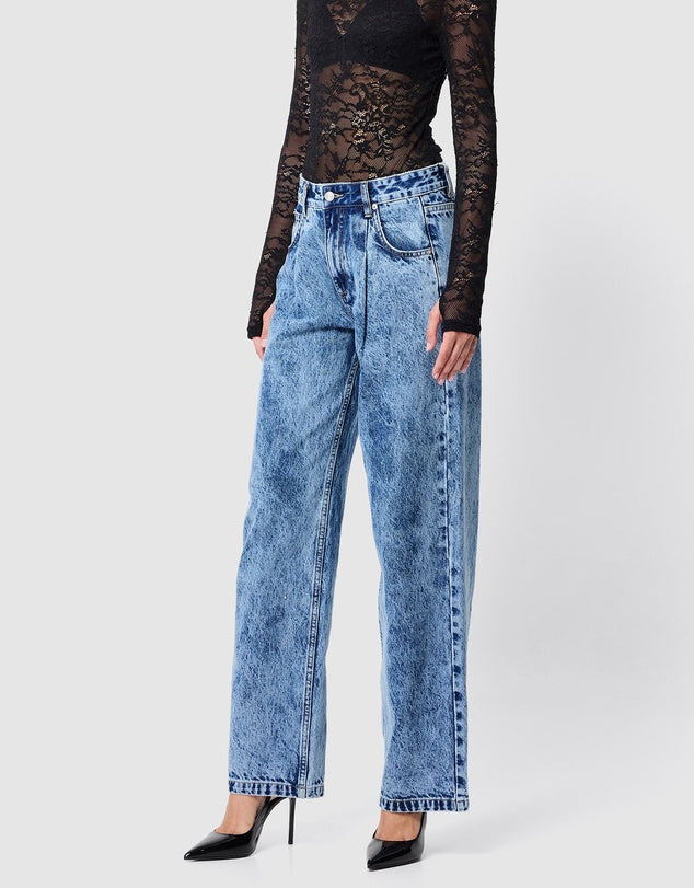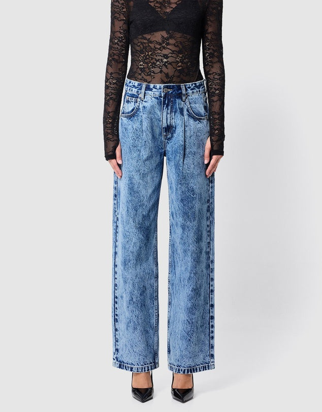 The Prism Jean delivers effortless style with a modern edge. Crafted in a statement acid wash, this mid-rise silhouette features an upsized fit with front pleats and a relaxed wide-leg cut for a laid-back yet elevated look. Finished with classic button closures and designed for comfort and longevity, it’s a seasonless staple made to be on high rotation. Pair with everyday basics or style with the matching Prism Jacket for a bold double denim moment.