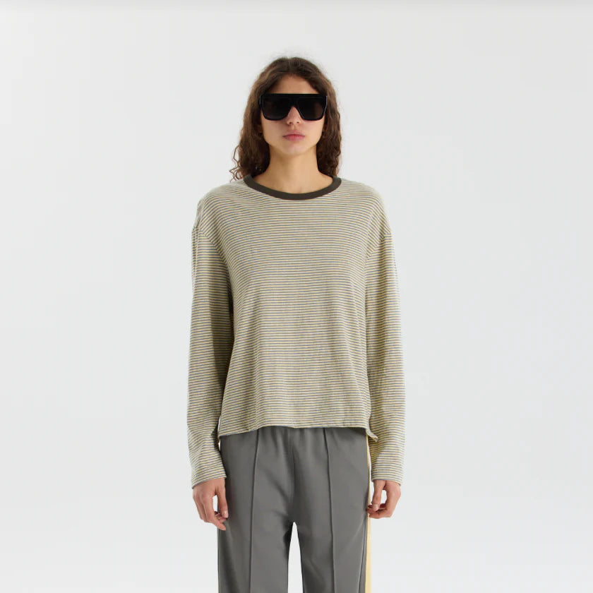Stripe Boyfriend Htg L/S T Shirt - Yellow / Purple