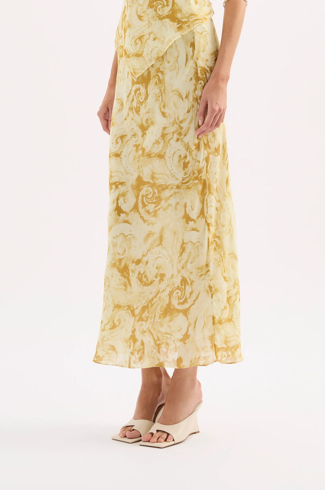 The Golnesa Skirt is made from a fluid georgette fabrication and features bespoke and exclusive Golnesa print. Cut on the bias, this silhouette drapes over the body softly and finishes at ankle length. Features include an elasticated waistband. This skirt is fully lined.
