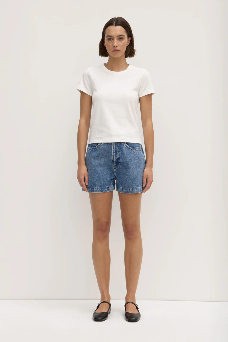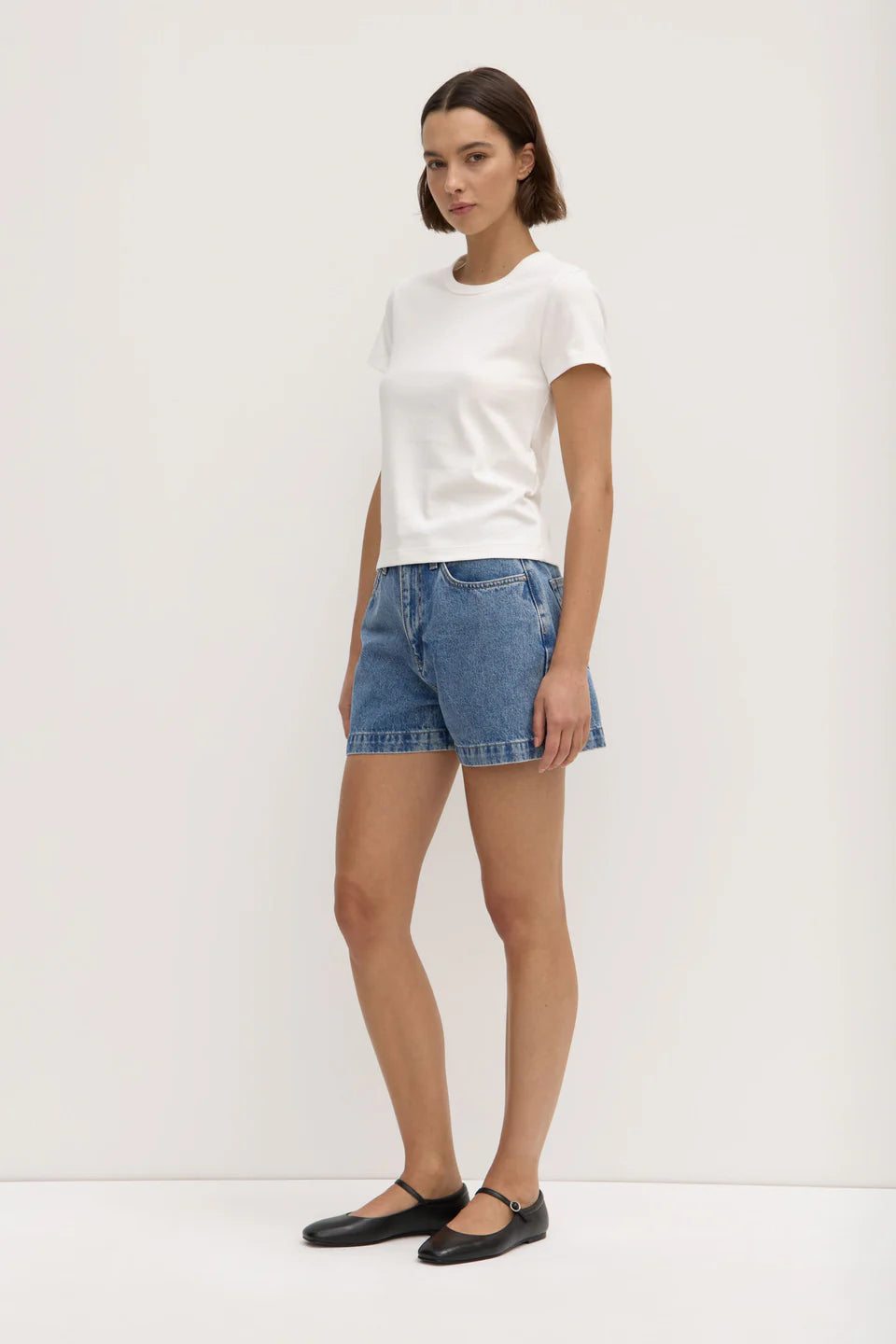 The Lyla Cap Sleeve Tee is the new layering piece for your capsule wardrobe. Made from 100% cotton and supremely soft, this baby doll tee features a crew neck, cap sleeves and is designed to sit close to the body. Pair with pants and a blazer for simple everyday styling.