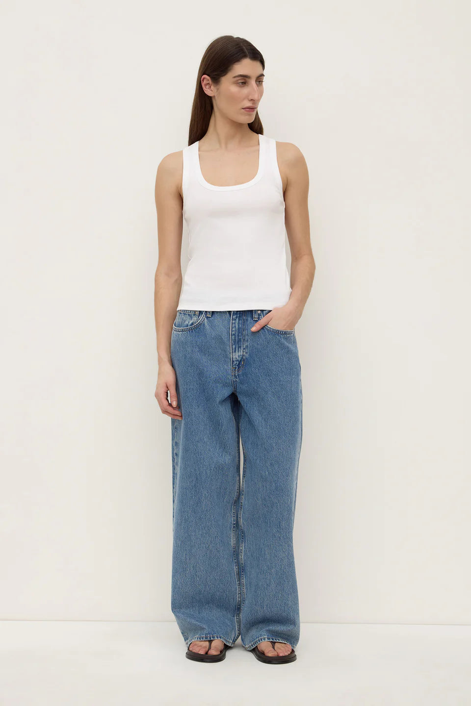 Form-fitting ribbed tank crafted from a super-soft cotton jersey. Features a scoop neckline, perfect for layering.