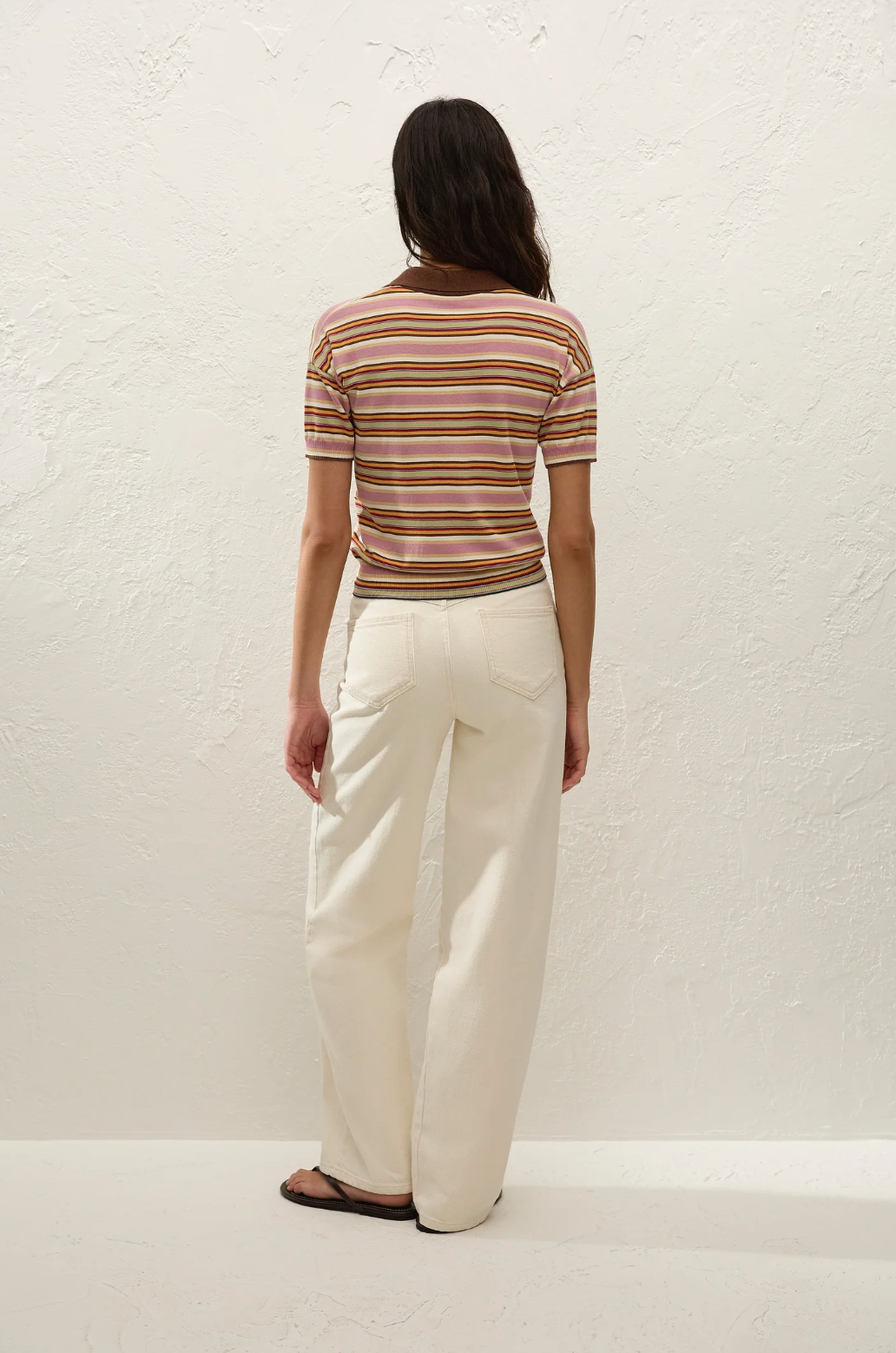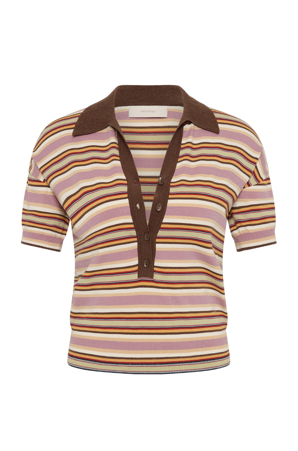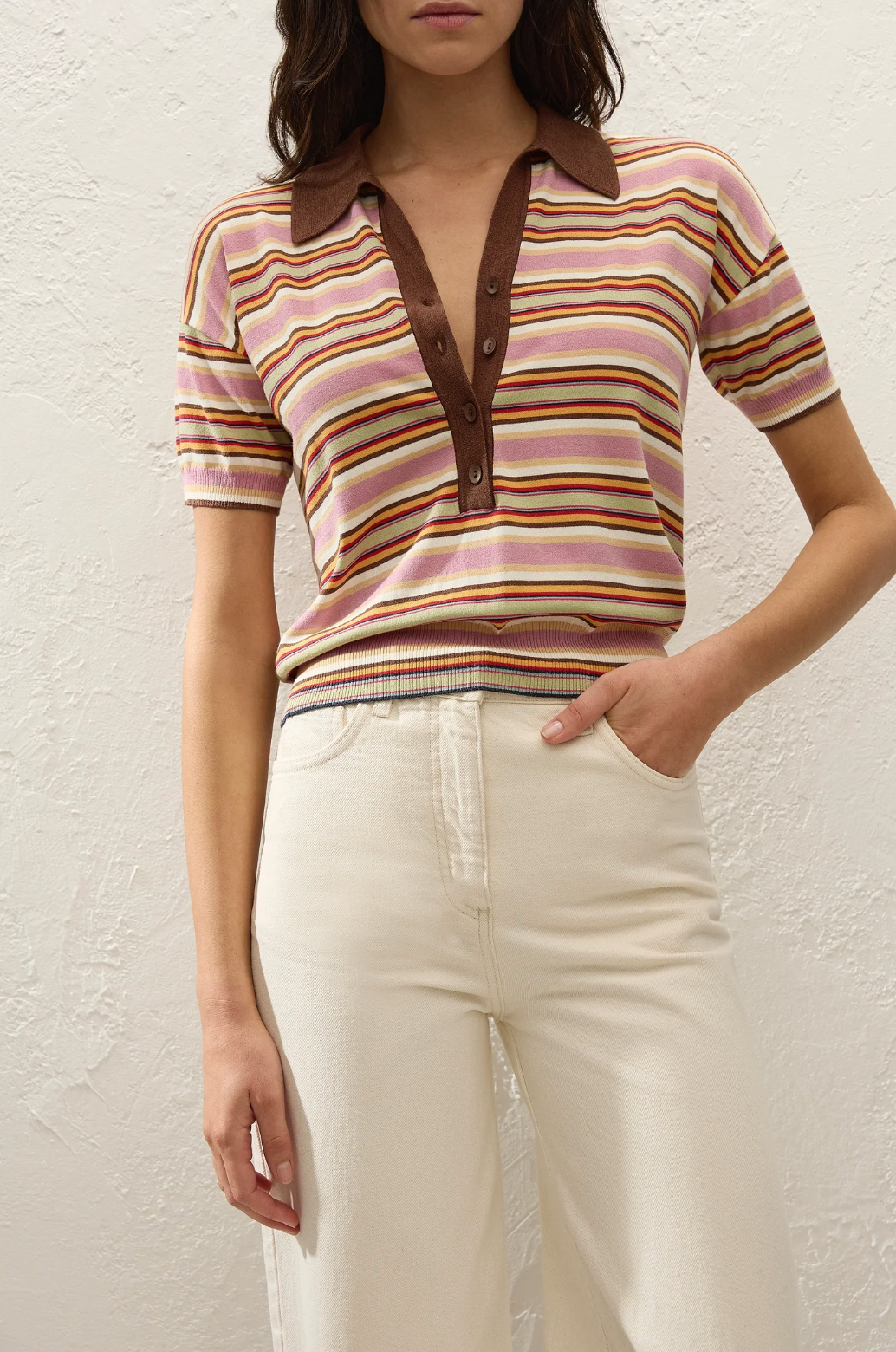 Sable Polo Shirt - Luis Stripe Dusty Mauve
