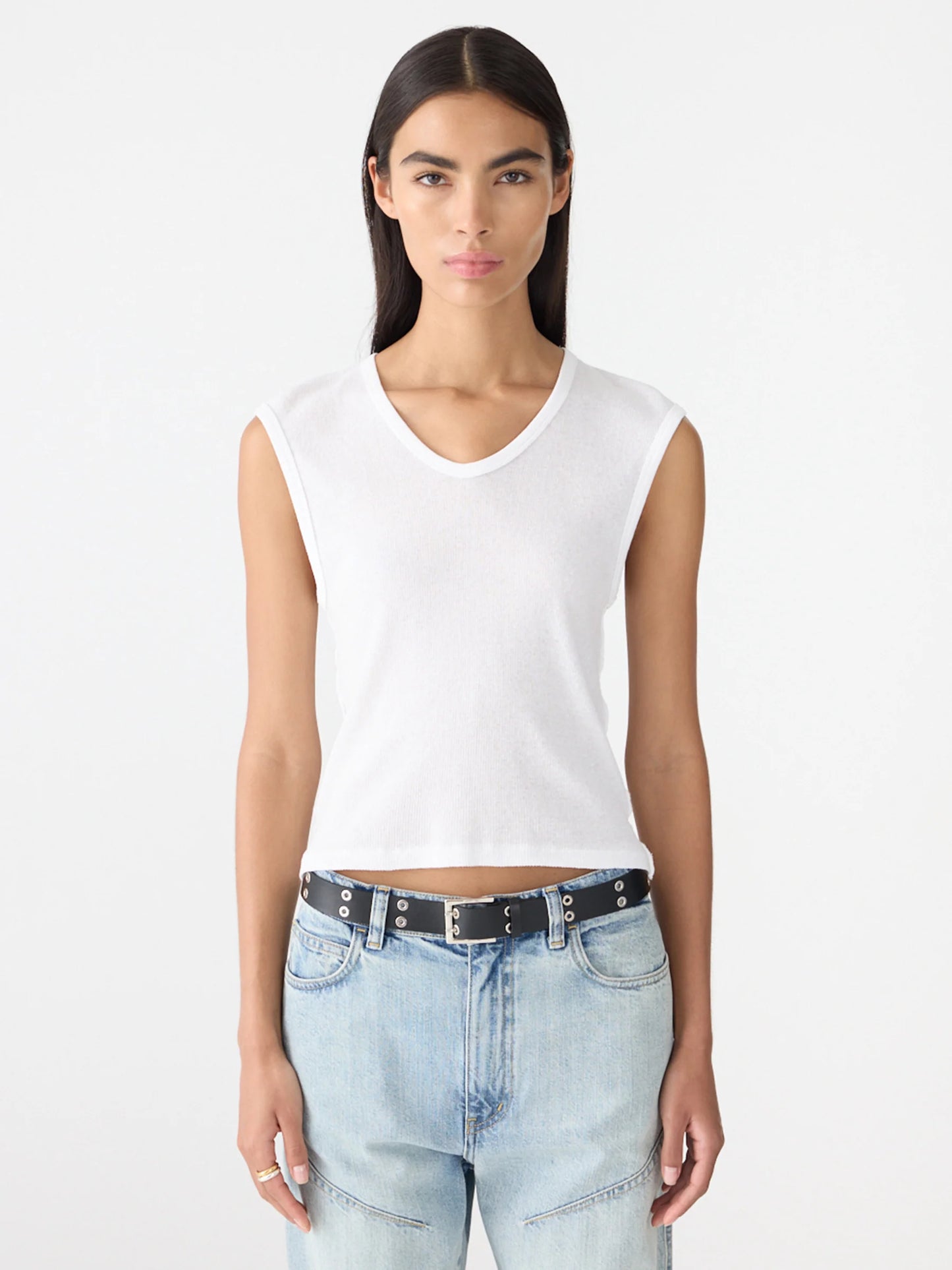 A seasonal essential, the Sheer Rib V-Neck Muscle Tank is crafted from an Australian organic sheer rib for a lightweight, breathable feel. Designed in a muscle tank silhouette, it features a ribbed neck and armholes with a clean finished hem.