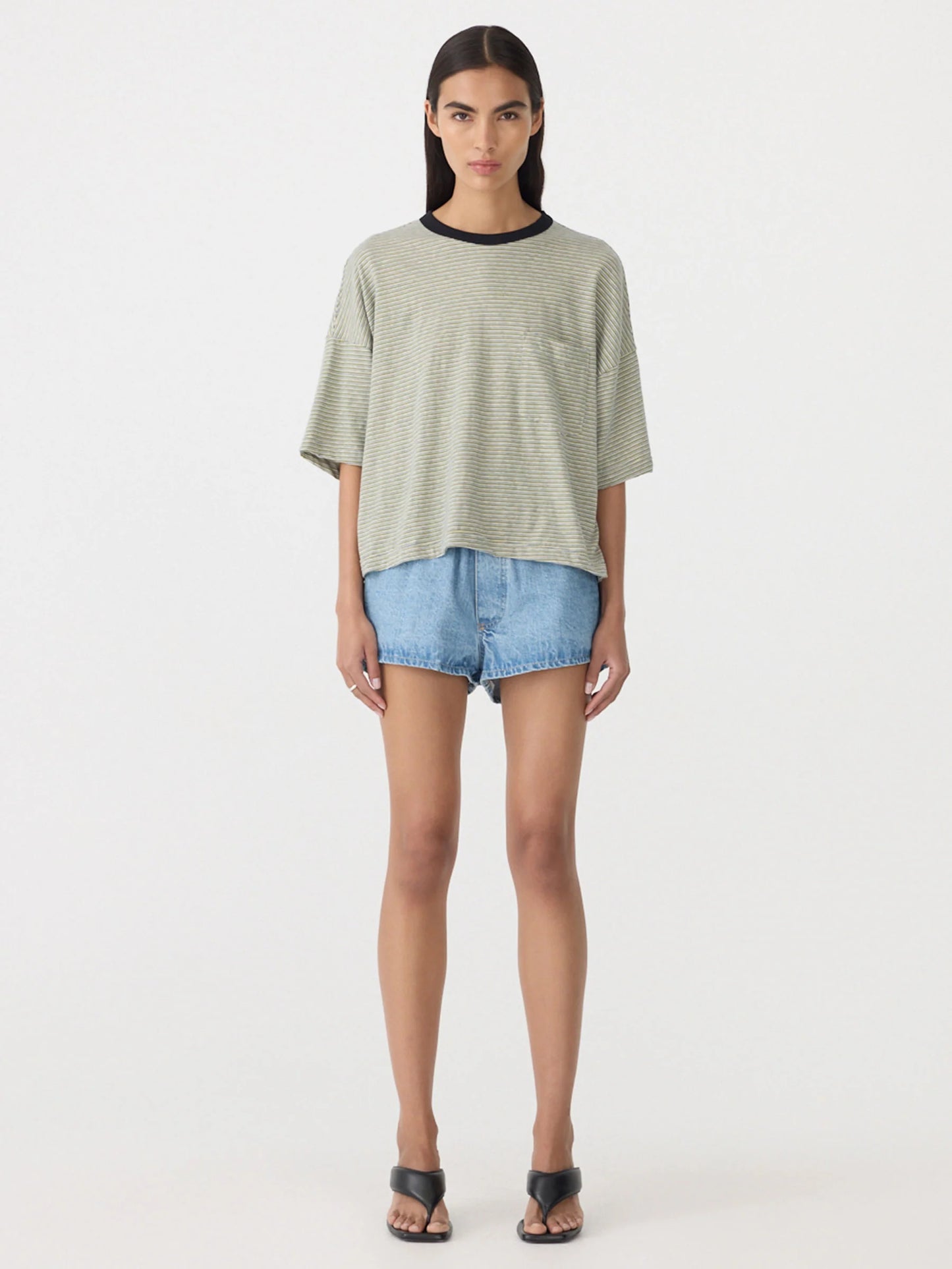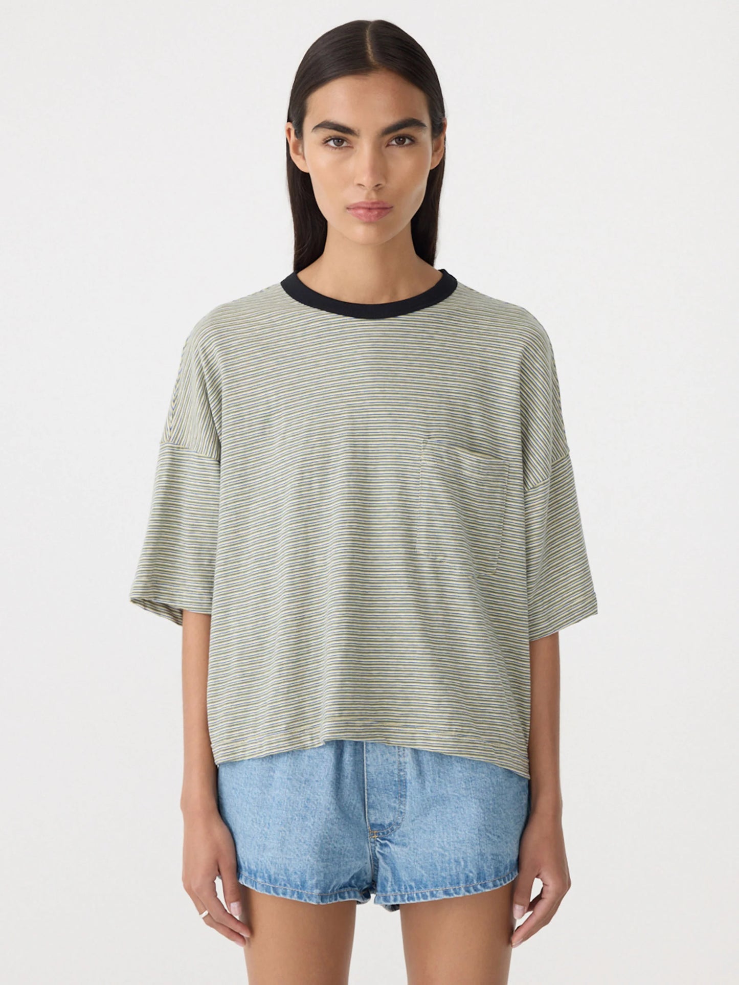 Stripe Boxy Pocket T.Shirt - Green/Blue/White