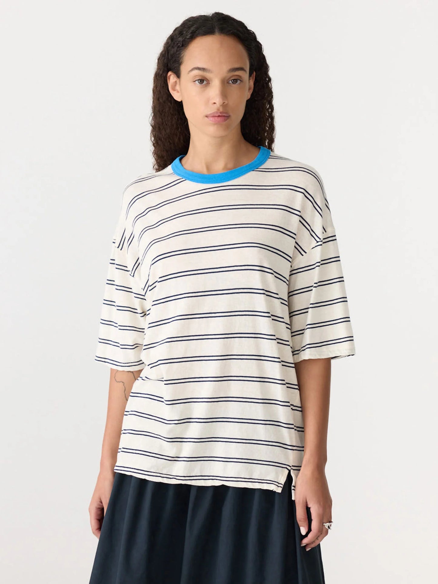 Stripe Boxy T.Shirt - Navy/Undyed/Blue